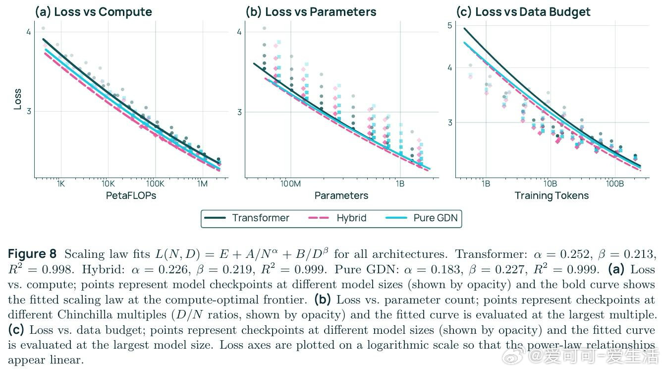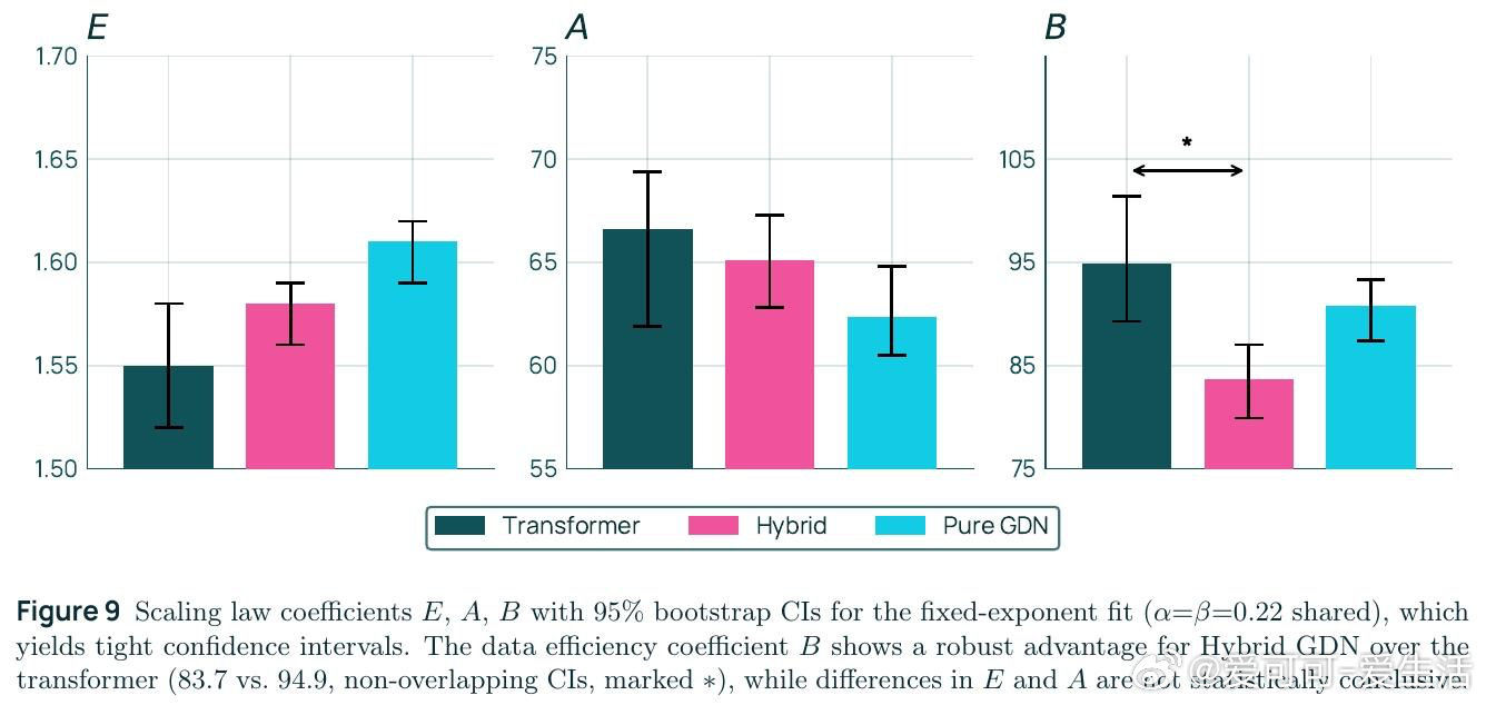 这项工作真正留下的遗产是:首次在受控大规模实验中,同时用理论(电路复杂度与量化缩放定律)和工程证据证明混合架构是基础性优势而非工程技巧。它为后来者打开的新门是:更高表达力可系统性地改善数据效率系数B,这一理论框架可指导未来架构搜索。但尚未跨过的门槛是:后训练阶段(尤其是强化学习)中RNN状态的数值精度问题仍制约推理稳定性,且理论预测与实验之间的定量对应尚需更严格的验证。