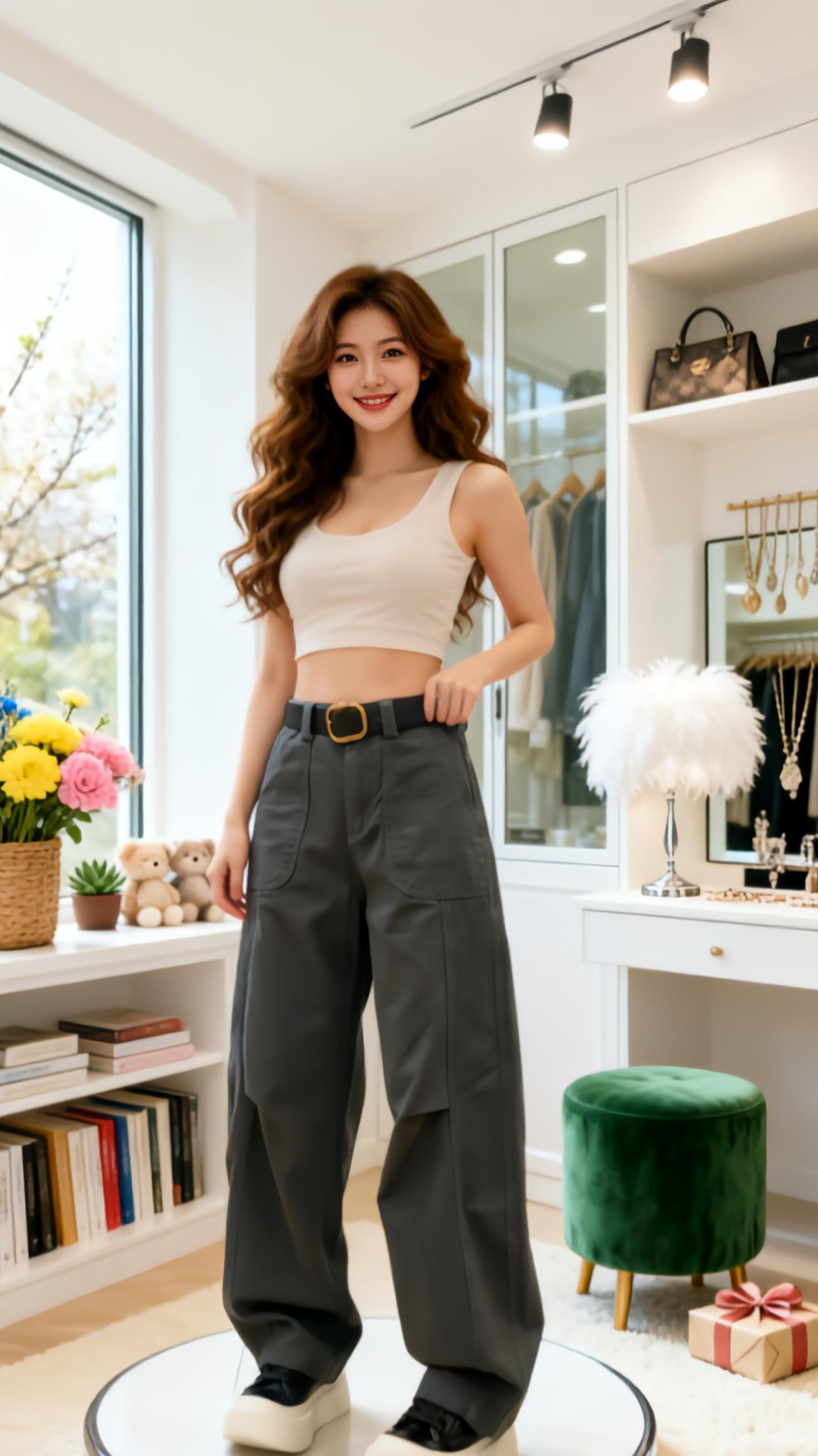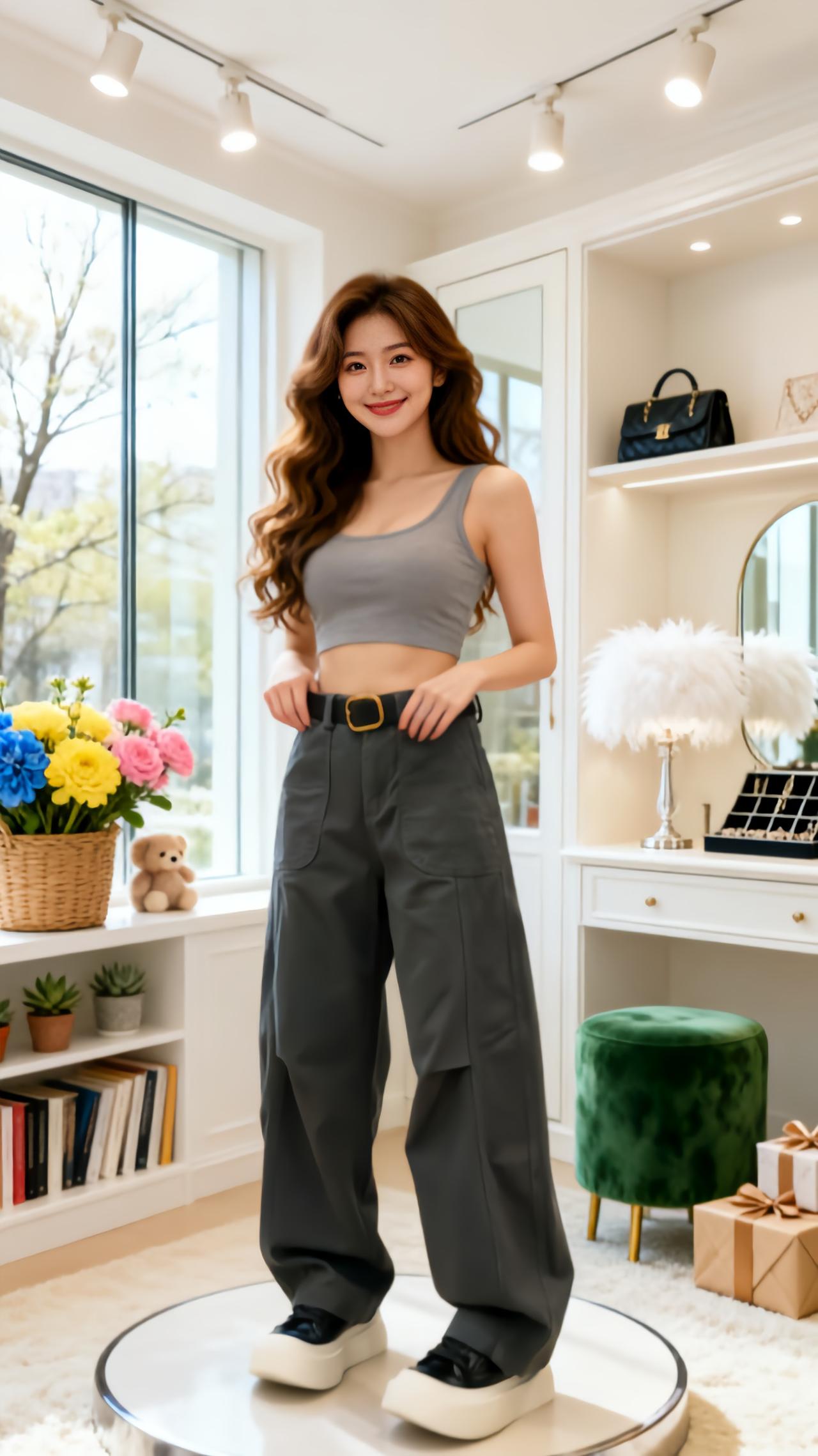 梨形身材的时尚法则 梨形身材的舒适区 活力穿搭 灰色高腰宽腿裤 梨形身材的秘密武器