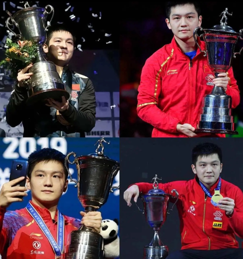 樊振东已拥有四个世界杯单打冠军了,最早一个还是19岁就拿到了。