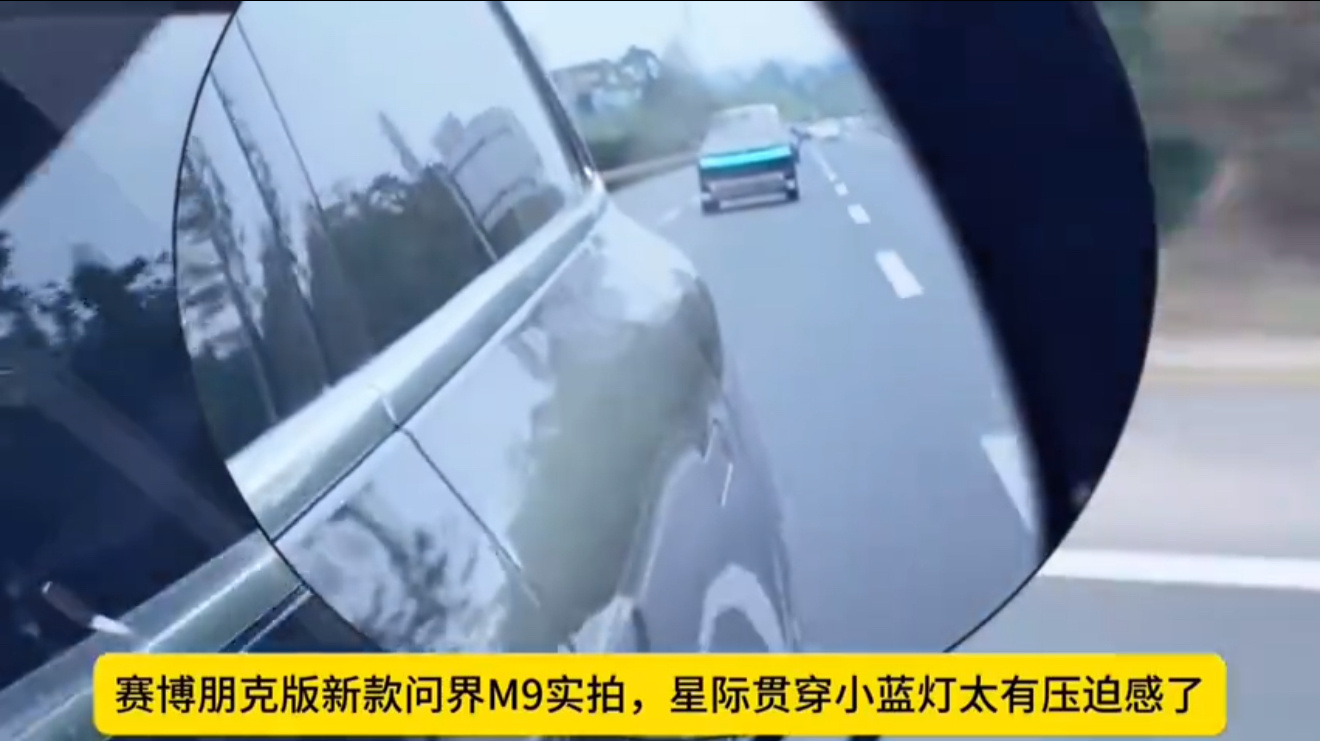 2026款问界M9无伪装实车路测画面曝光,智驾状态下的贯穿式蓝灯首次公开。