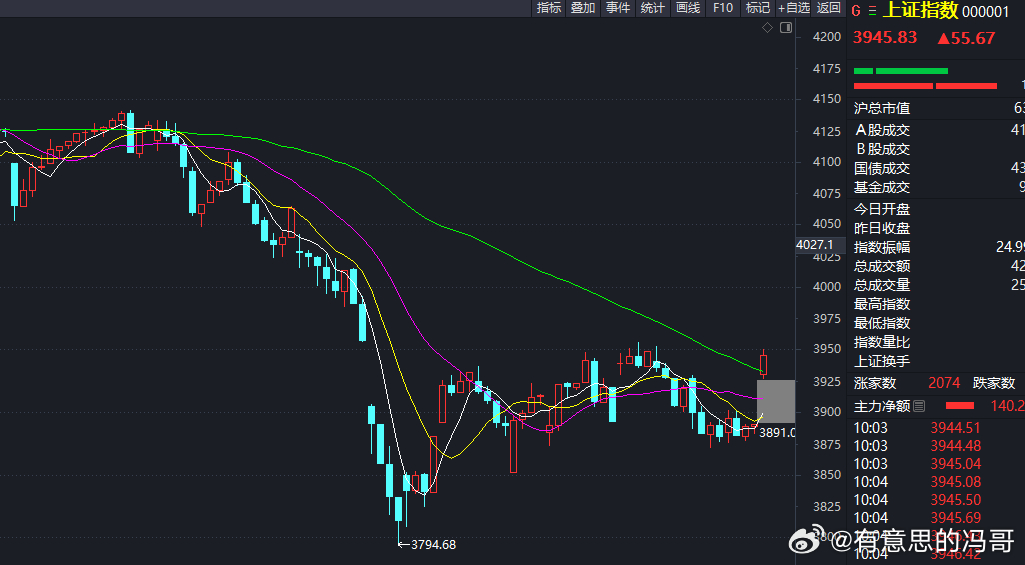 早盘A股放量高开,科技股引领反弹,创业板大涨近4%,上证指数涨1.4%。上证指数压力在3950附近,需要突破这个压力,才能算是反转见底。只要正式突破3950点,行情才能反转,否则还会震荡一段时间。