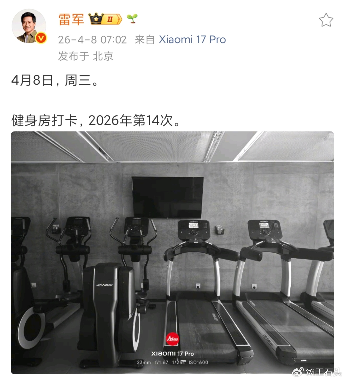 时隔两个多月,雷总重返健身房。前几天我就说还欠87次,没想到这么快就行动了。因为雷总今年有三个小目标:健身100次、学会开叉车、交付55万辆小米汽车,所以最近两个月自然是干另外两件事去了。