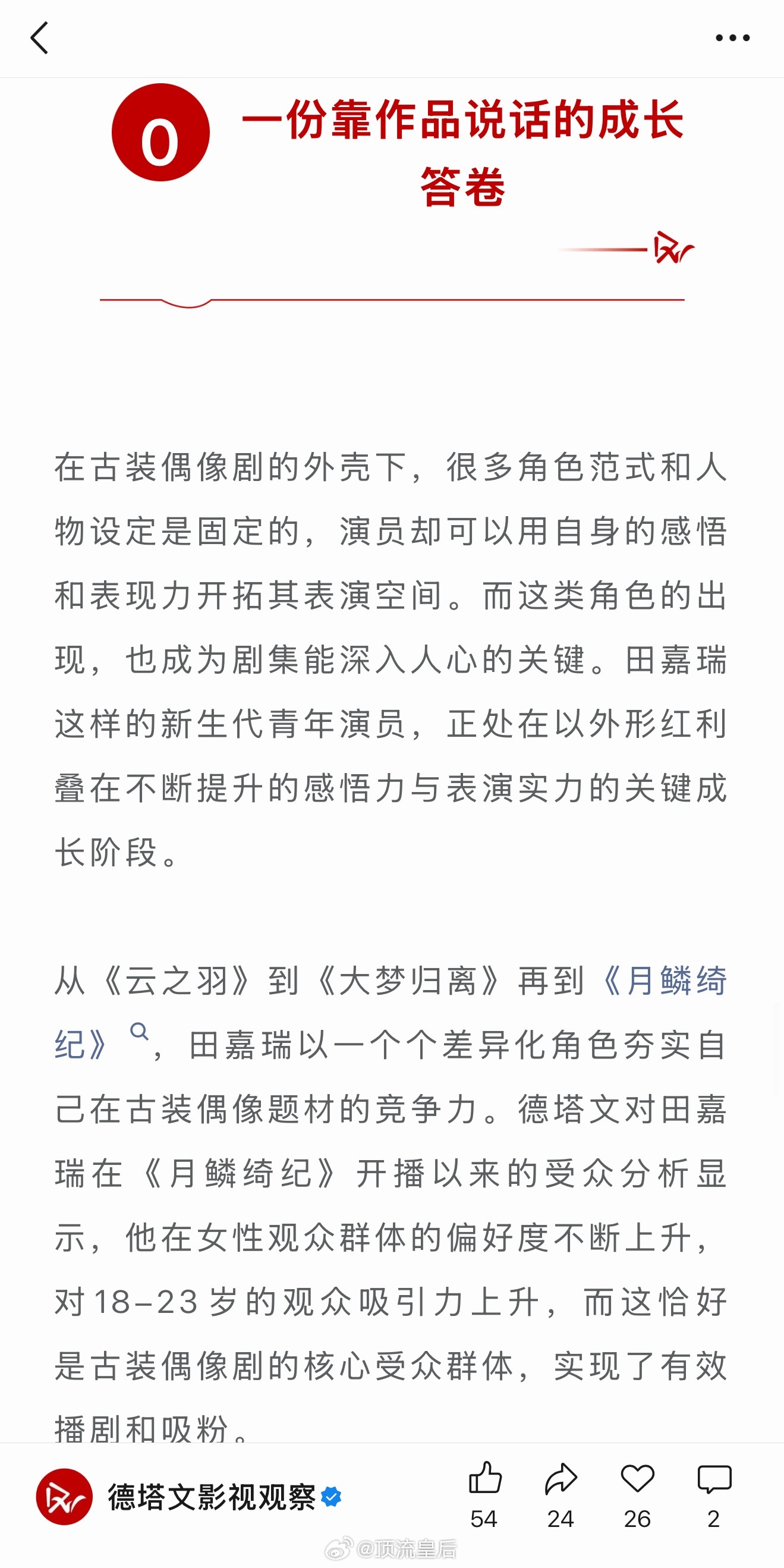 德塔文发文,《月鳞绮纪》田嘉瑞:精准感悟,展现灵性“95生”的角色建构力突破表演