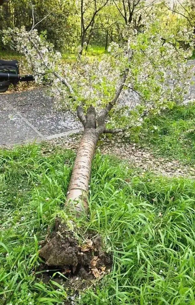 4月6日,上海顾村公园出大事了!一女子为拍照爬上樱花树,结果直接把有20多年树龄的整棵树连根压倒。视频里她爬上枝桠,同伴递手机时树就倒了,还好人没事能爬起来。