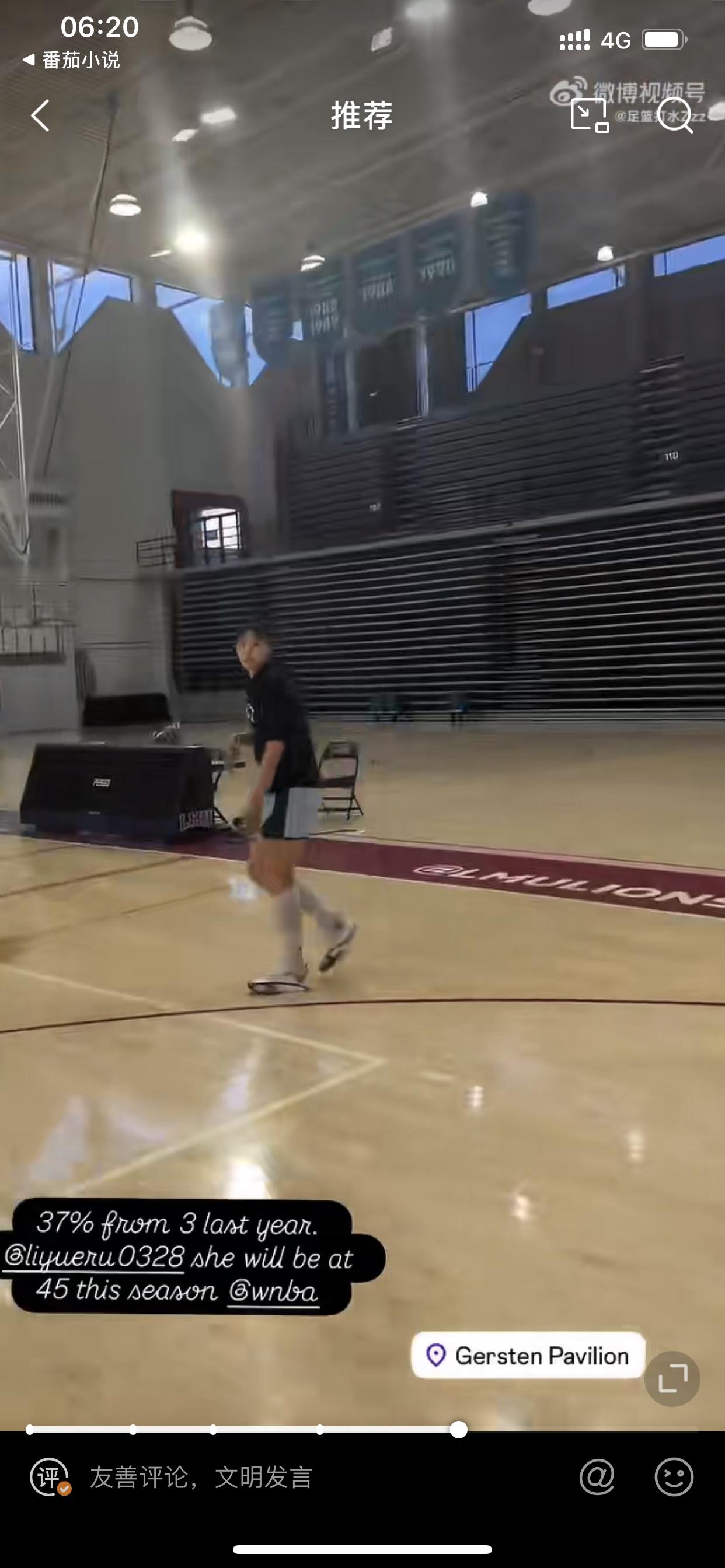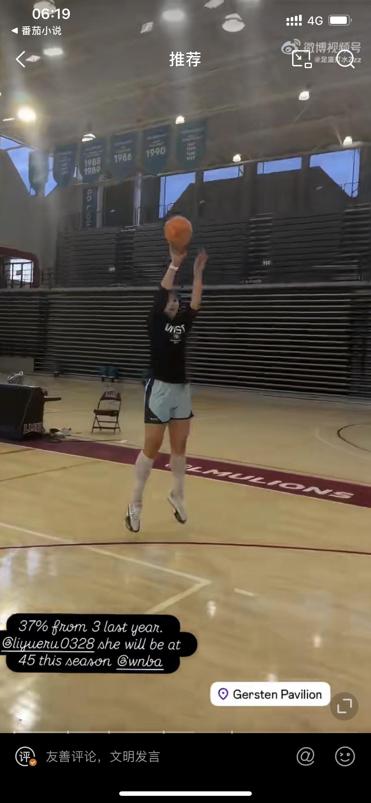 近期,李月汝并没有在休整当中,而是联系了一位NBA投篮训练师给她自己单练三分球