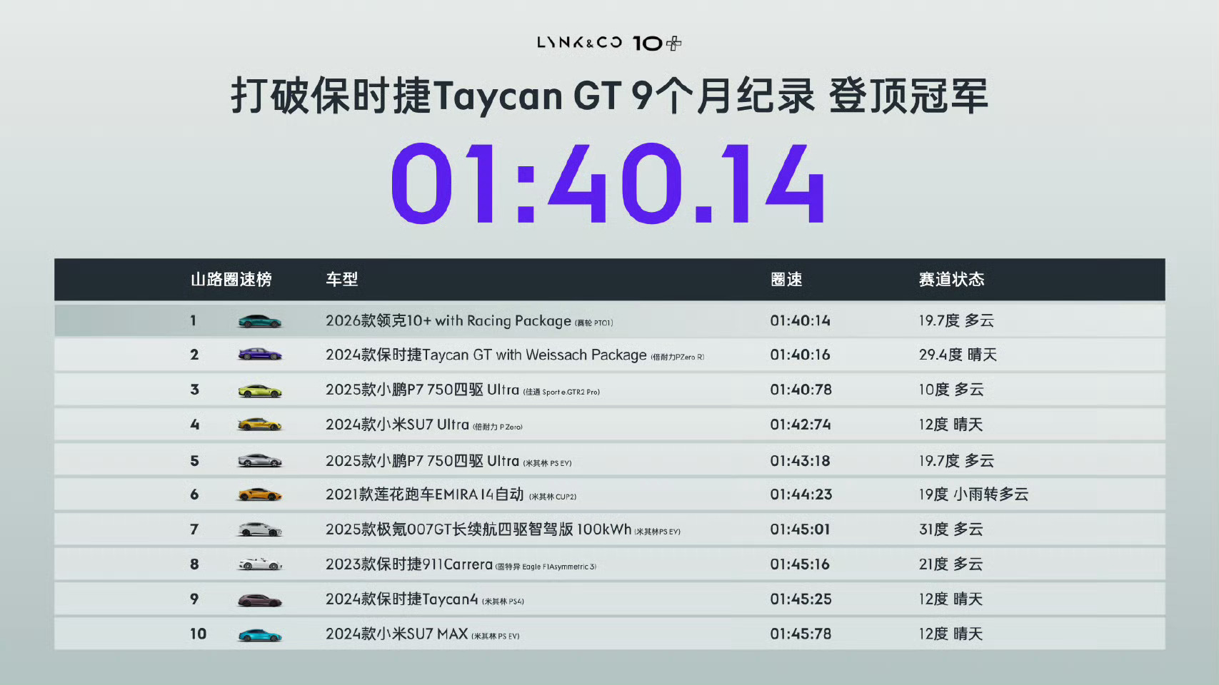 1分40秒14,领克10+超越Taycan GT登顶亚洲山脊赛道圈速第一保罗车闻