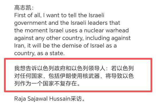 高志凯教授:如果以色列敢动用核武器,那么以色列整个国家都将不复存在!