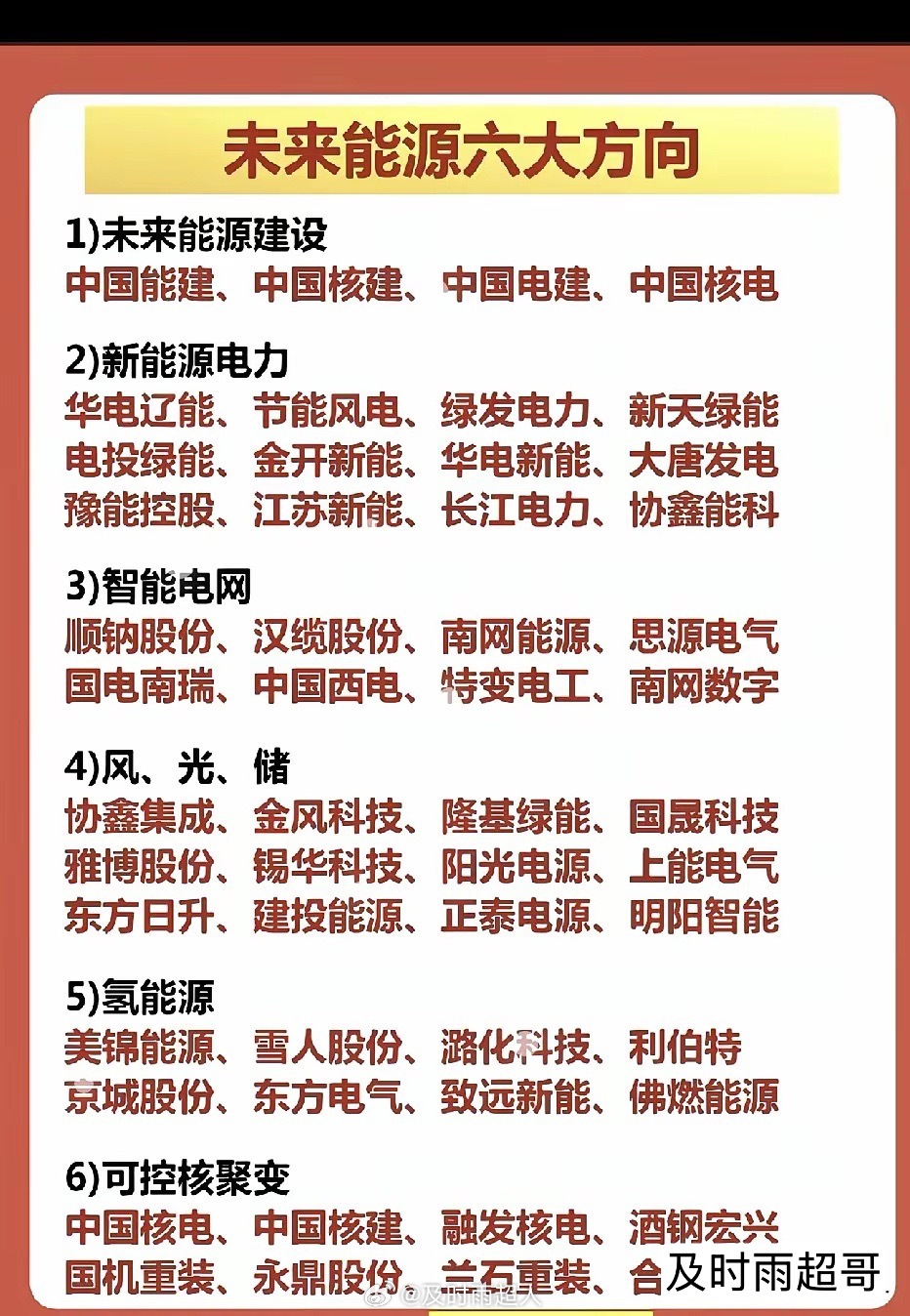 这张图梳理了未来能源领域的六大方向及相关企业,我们可以从每个方向的定位、代表企业