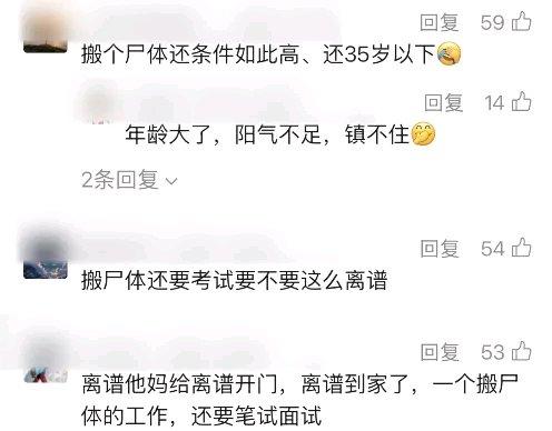 云南一医院太平间招聘要求能搬运尸体引热议,劳务公司:月薪4千左右,有百来人报名这一招聘信息引发的热议在网络上持续发酵。不少网友对此表达了不同的看法。一些人认为这份工作虽然特殊,但月薪4千左右的报酬相对来说吸引力不足,毕竟搬运尸体这样的工作需要极大的心理承受能力。有网友评论道:“这活儿可不是一般人能干的,4千块钱感觉有点少了。”