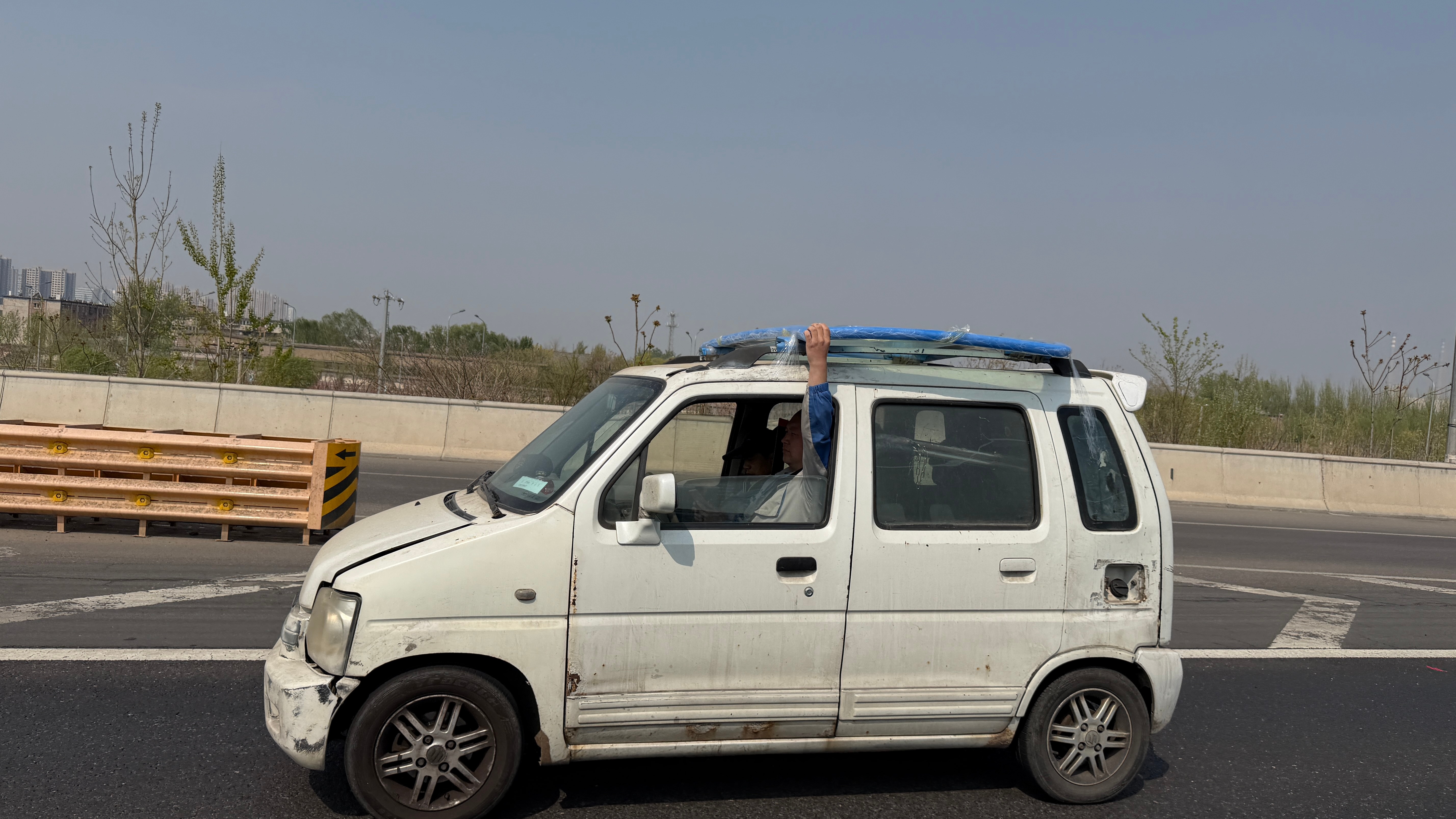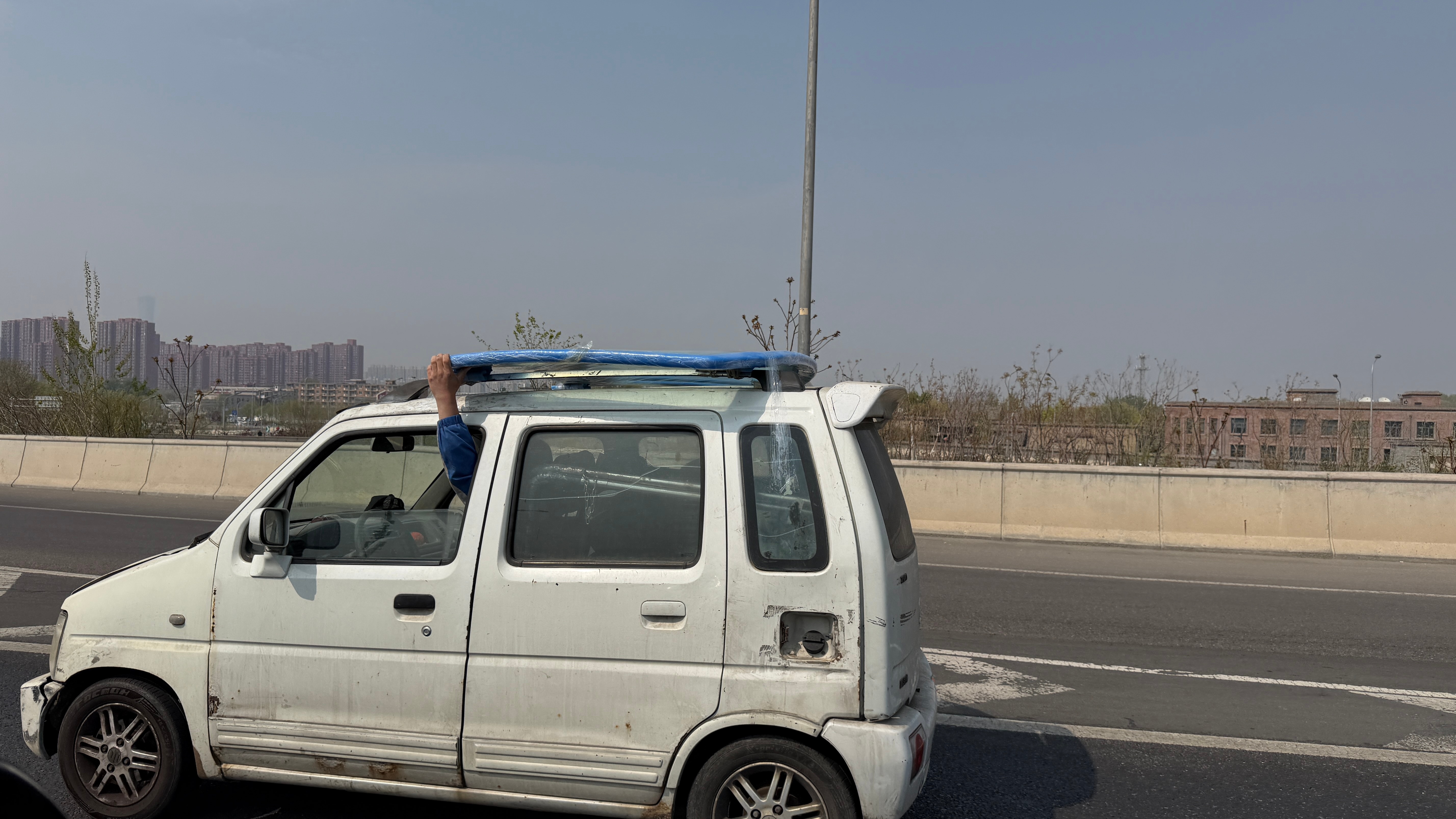 偶遇一位狠人配狠车……怕胶带贴不稳,还特意手扶着……违反交规了哥
