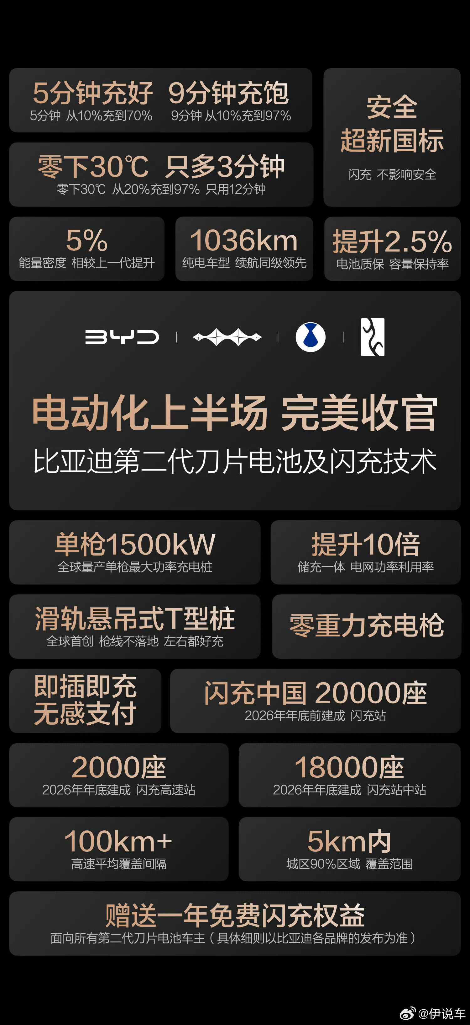 比亚迪的闪充技术是真的颠覆,彻底打破了大家对新能源汽车充电慢的印象,5分钟就能充好、9分钟直接充饱,就算到了零下30度的低温环境,也只多花3分钟,低温充电的难题也解决了。更贴心的是,只要是开搭载第二代刀片电池的比亚迪闪充车,在全国所有闪充站都能享受1年免费闪充的福利。