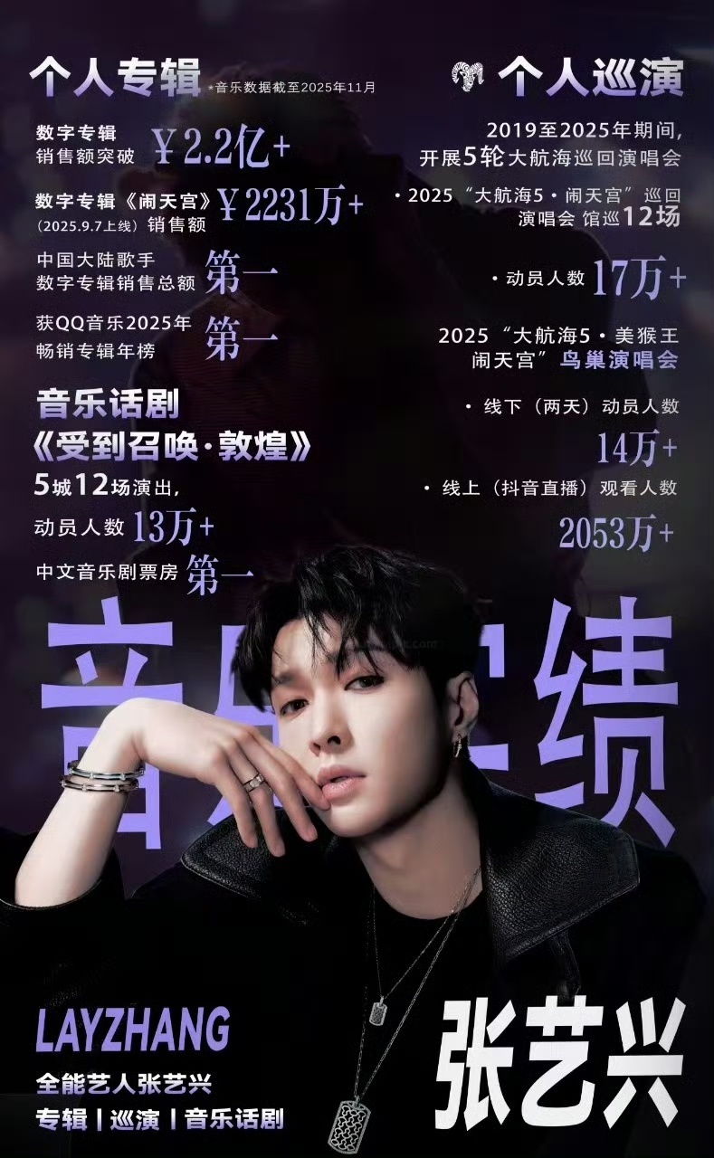 十四年逐光,实绩封神!张艺兴出道14周年快乐✨M-POP开创者,原创专辑登Billboard200,《孤注一掷》38.49亿票房,话剧票房年冠,全能顶流实至名归!