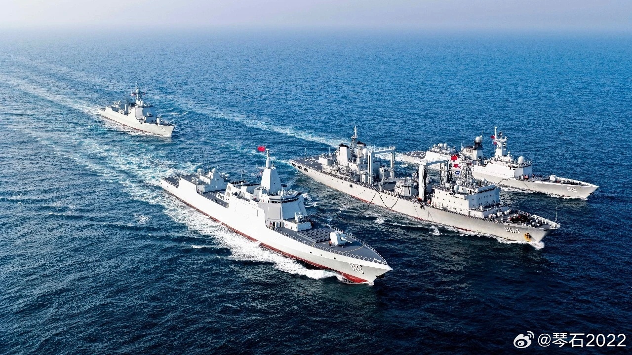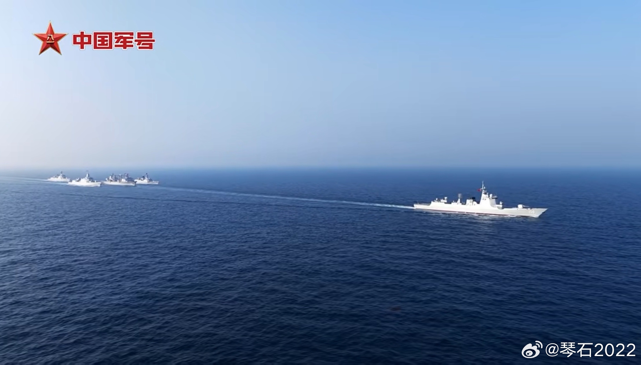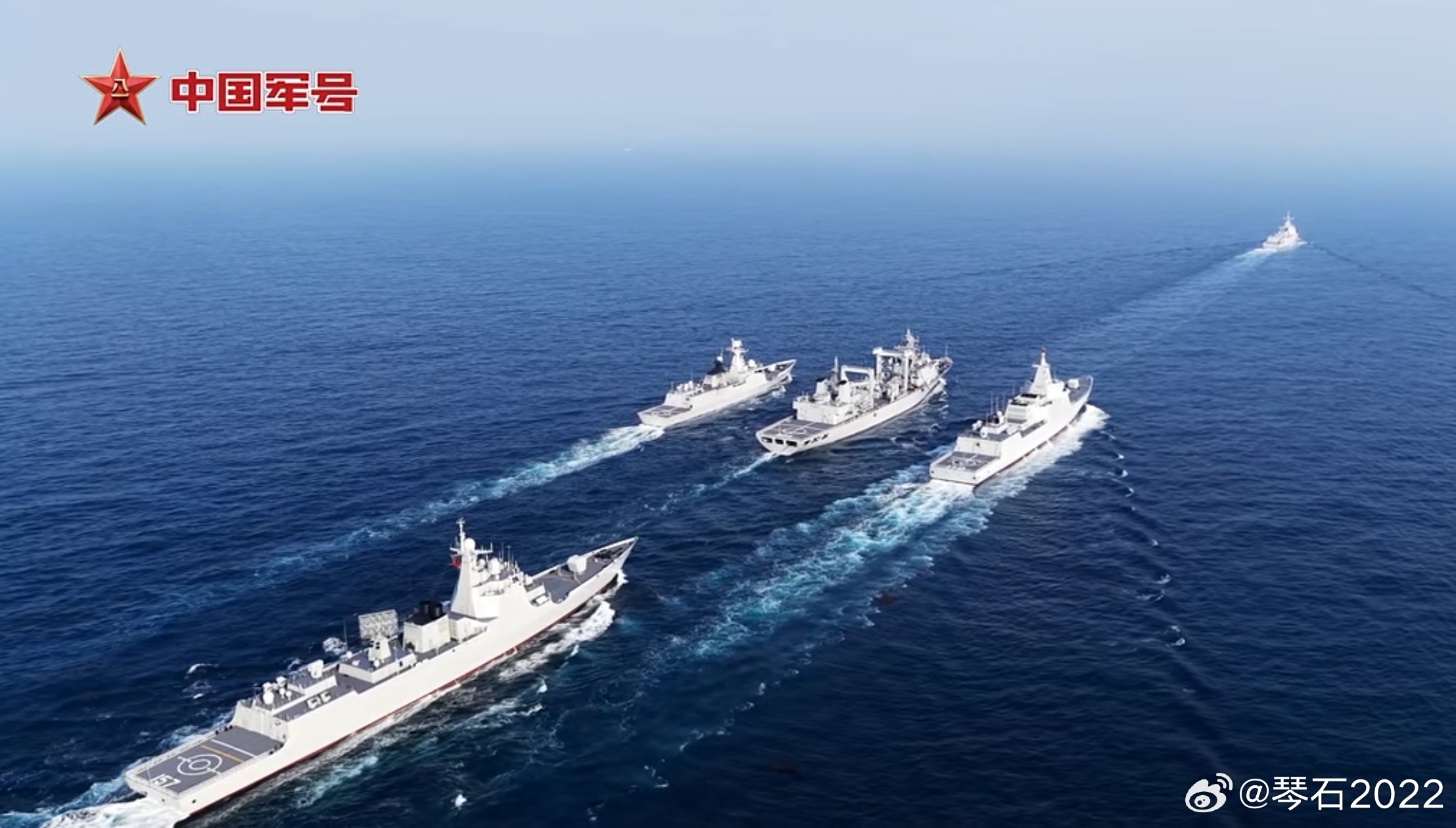 前面还有1艘打伞不仅仅两横一纵,前面还有一艘防空舰负责打伞。中国海军力量烽火问鼎