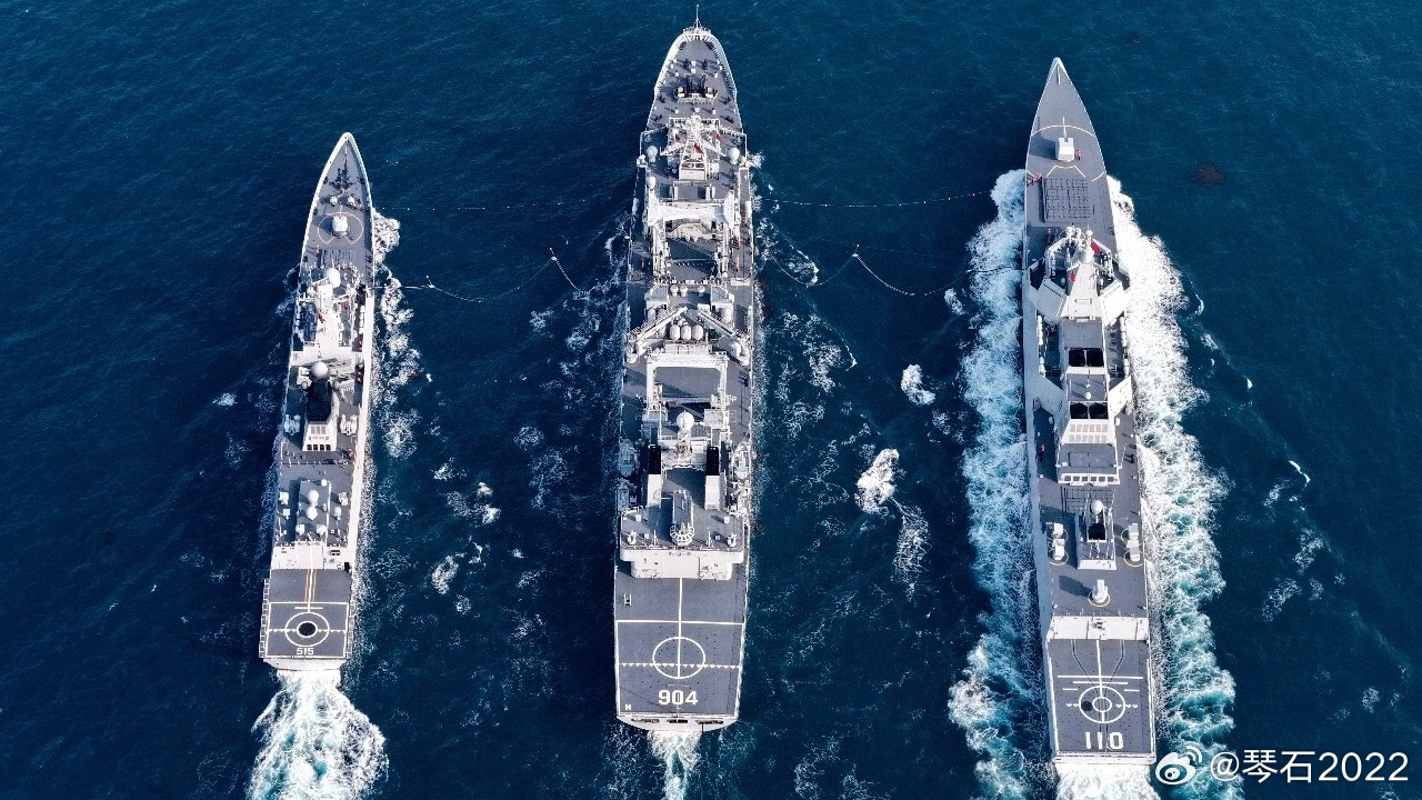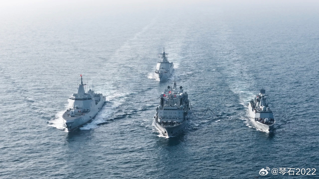 第二批最新055正在补给。图里这3艘船,其中055和后面052D是可以发射鹰击-