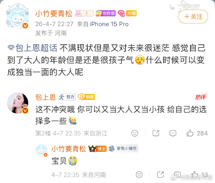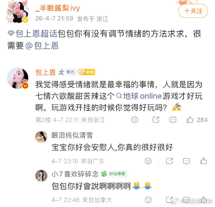 包上恩安慰粉丝的话看得人心软软的,像一个懂你委屈的朋友,很温柔又很有力量,就是想