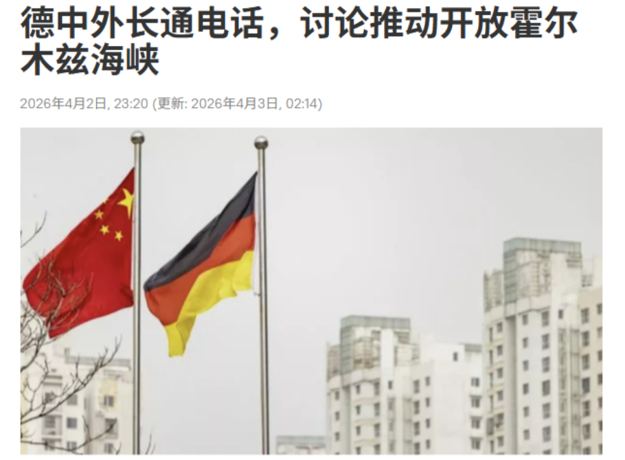 另据俄罗斯卫星通讯社等媒体报道,德国外长瓦德普尔在4月2日与中方的通话中,特别明确的表达了希望恢复霍尔木兹海峡船舶自由通行的意愿。在通话的时候,瓦德普尔还特别提出,希望中国能利用自身影响力,对伊朗施加建设性影响,推动通过谈判解决问题,结束战事。