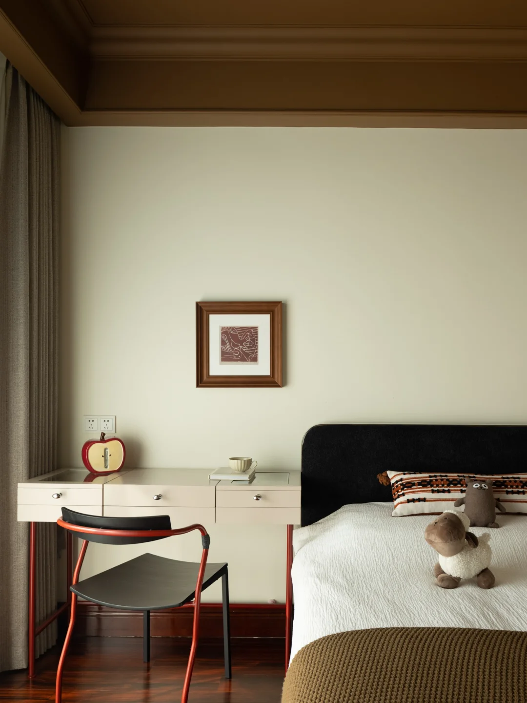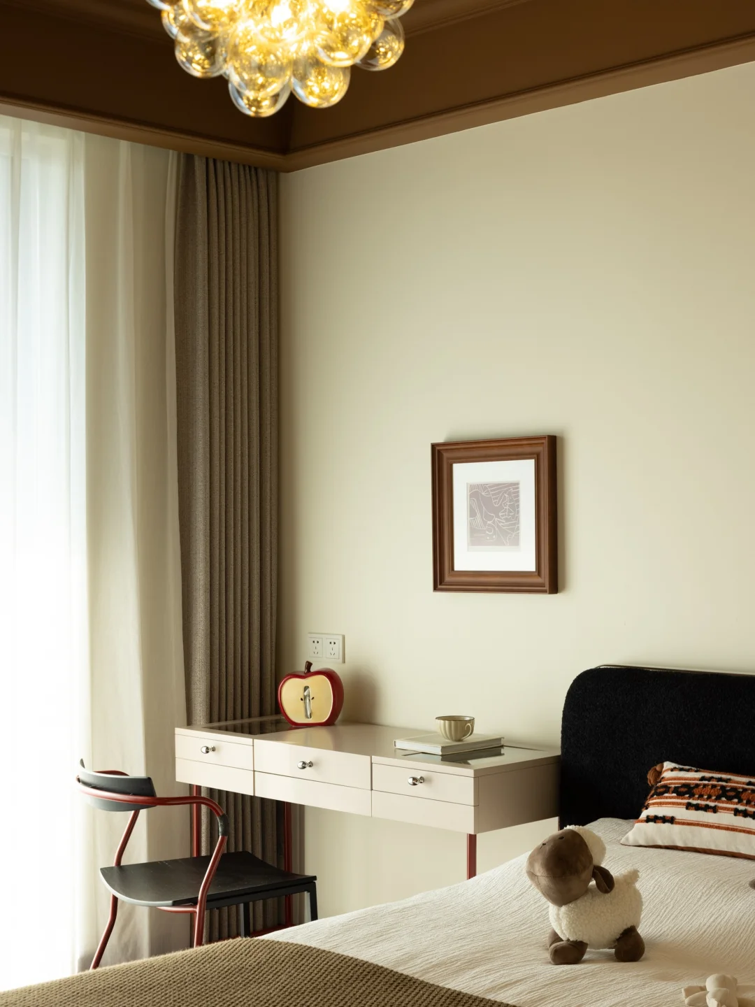 用肉桂色替代粉色,用造型灯具替代卡通贴纸
