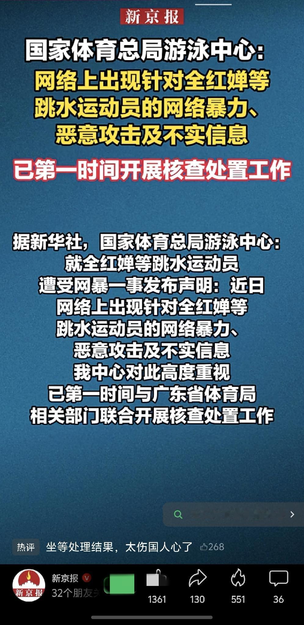 网暴从来不是言论自由,是违法犯罪。那些恶意造谣、人身攻击的账号,必须被彻查、被封禁、被追责,一个都不能放过。我们要做的,是守护这些为国争光的孩子,而不是让他们寒心。
