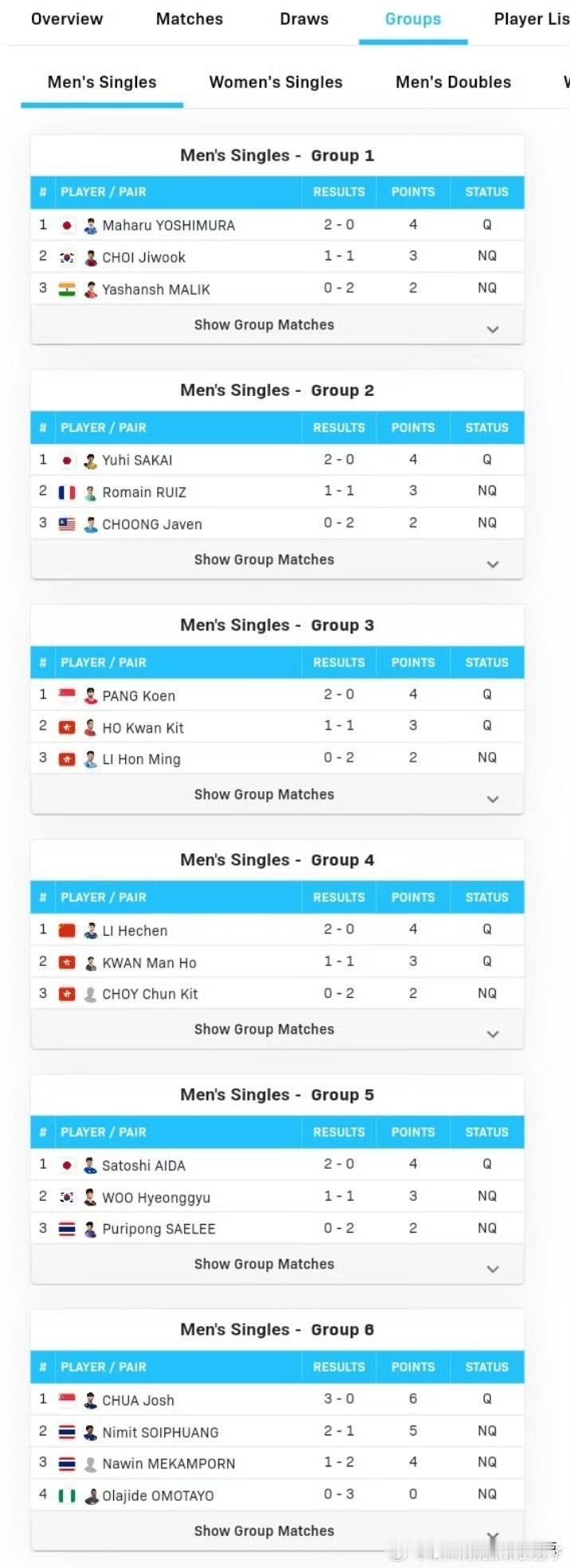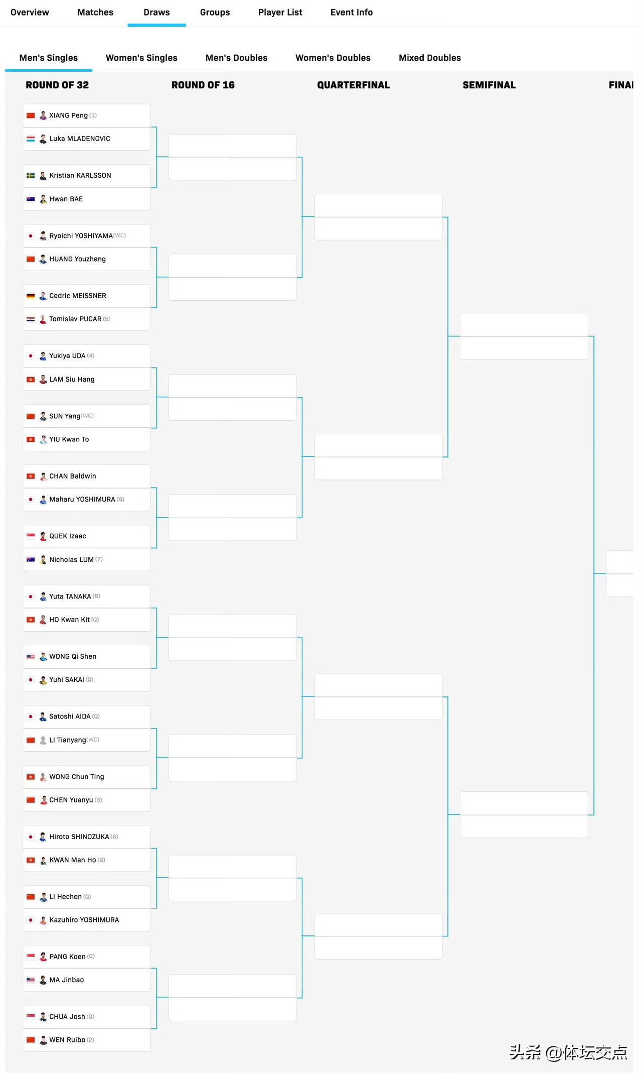 男单正赛签表·首轮完整对阵