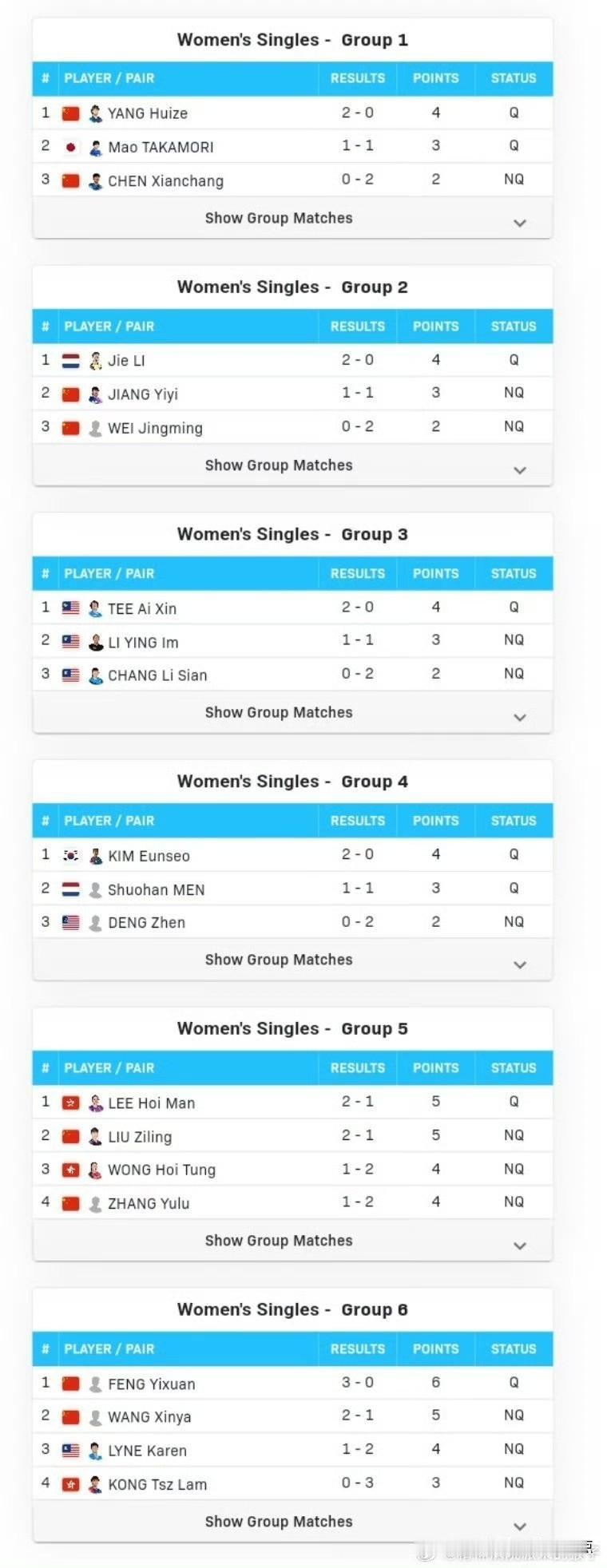 资格赛被淘汰名单(6人)