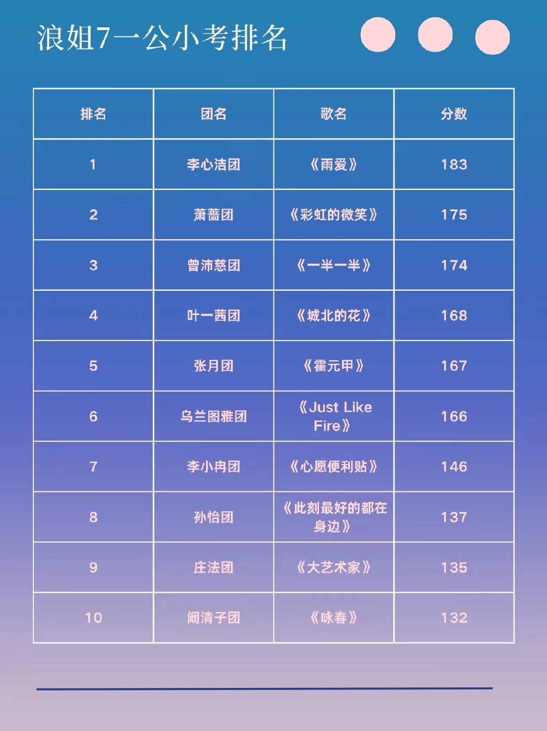 曾沛慈小考考了自己的身高很难不感叹这份巧合,曾沛慈小组演绎经典曲目《一半一半》,174的分数完美撞上身高,全程看下来舞台观感极佳,唱功扎实排名第三,期待周五解锁更多舞台魅力曾沛慈小组得分174