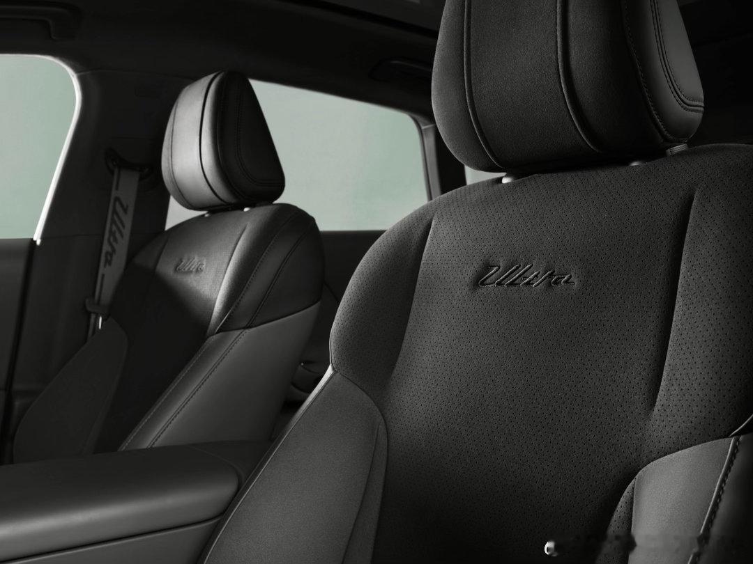 舒适:专属内饰细节,兼顾运动与实用内饰聚焦与普通版的差异化设计,采用逐风灰仿麂皮材质与大面积软包,配备Ultra 专属运动座椅、车身同色印花安全带及铝合金门槛饰板。同时搭载同级独有的前排 8 点式座椅按摩,在保持运动型格的同时,兼顾极致舒适体验。