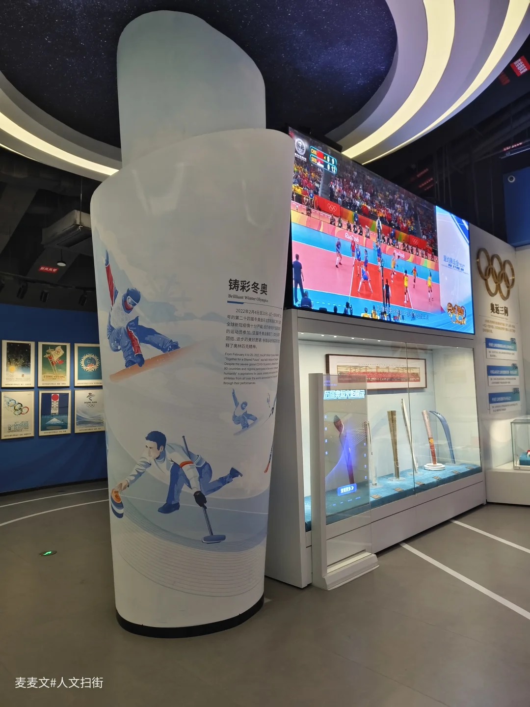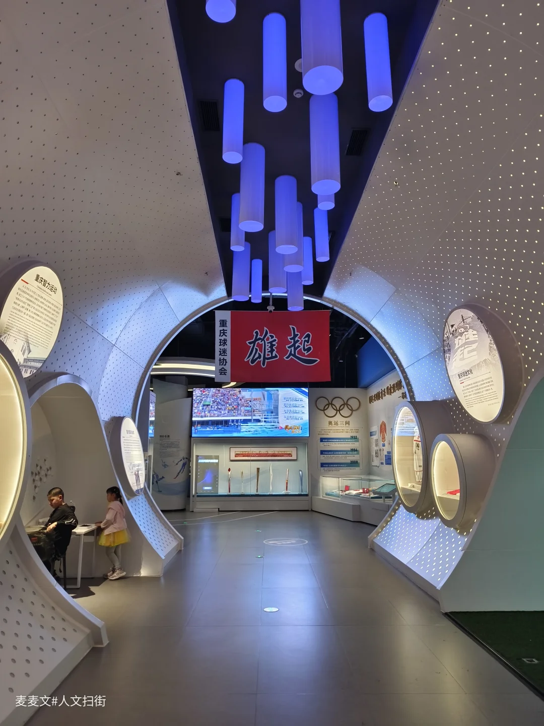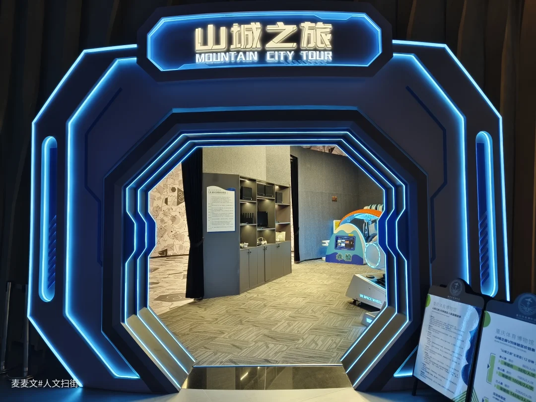 最让人惊喜的是“山城之旅”VR体验区,科技感十足的蓝色拱门,让人仿佛置身未来。在这里,观众可以沉浸式体验赛事,让体育博物馆不再只是静态的观赏,还是互动的、身临其境的探索。