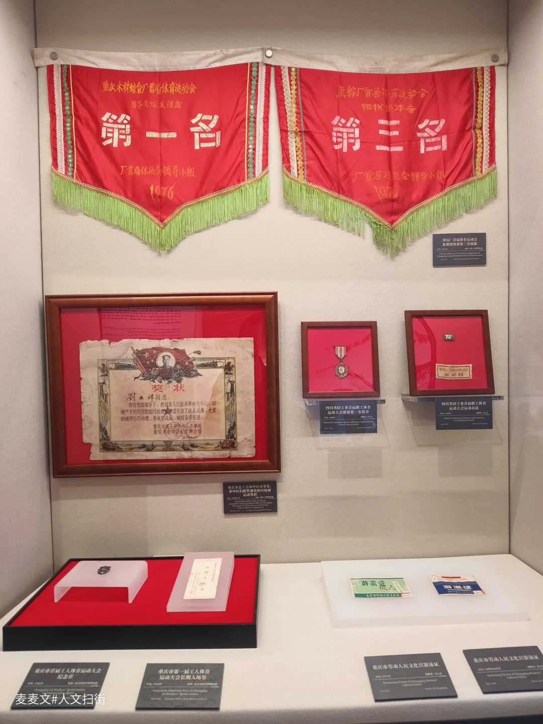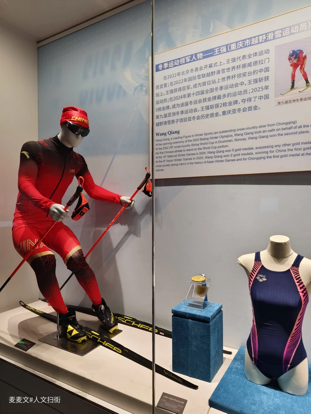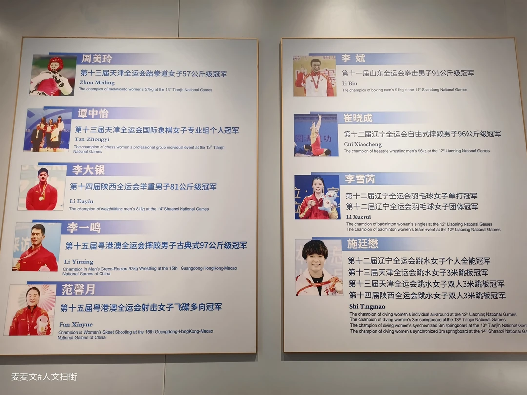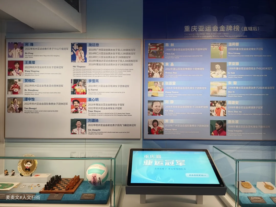 目光转向奥运与全运展区,这里是重庆体育明星的“名人堂”。田亮、施廷懋、李雪芮的战袍与奖牌静静陈列,张亚雯、王涛、刘希蓉的射击、羽毛球装备也在此展出。从夏季奥运到冬季赛场,越野滑雪名将王强的比赛服展示着山城健儿的冰雪雄心;全运会与市运会的金牌榜上,一串串名字记录着重庆竞技体育的代代传承。