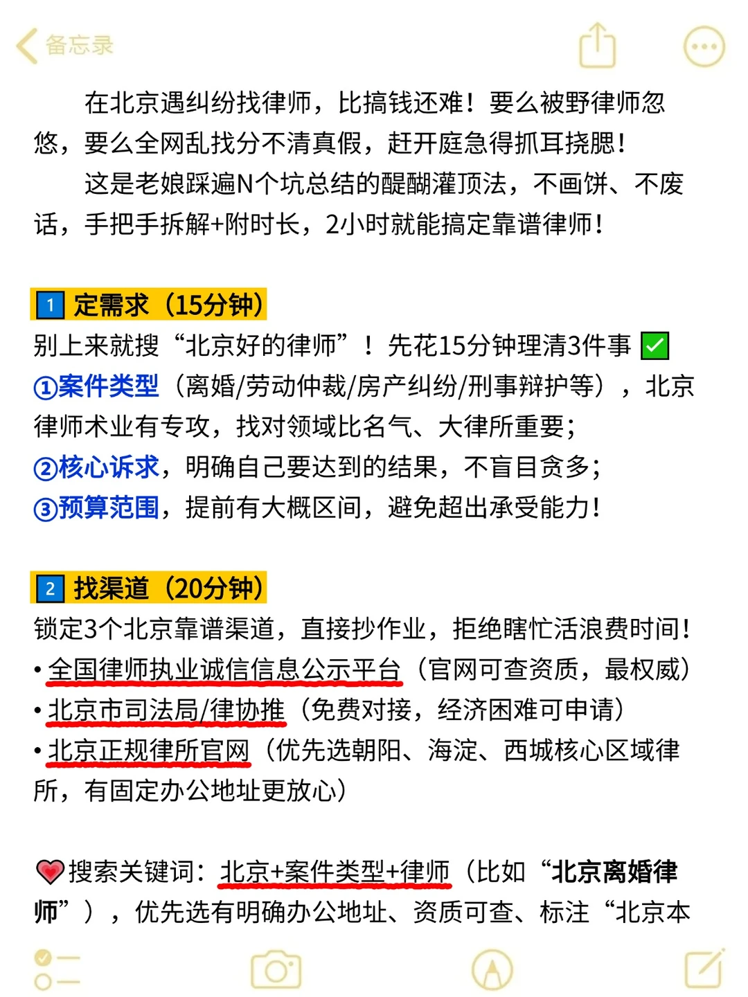 这是老娘踩遍N个坑总结的醍醐灌顶法,不画饼、不废话,手把手拆解+附时长,2小时就能搞定靠谱律师!