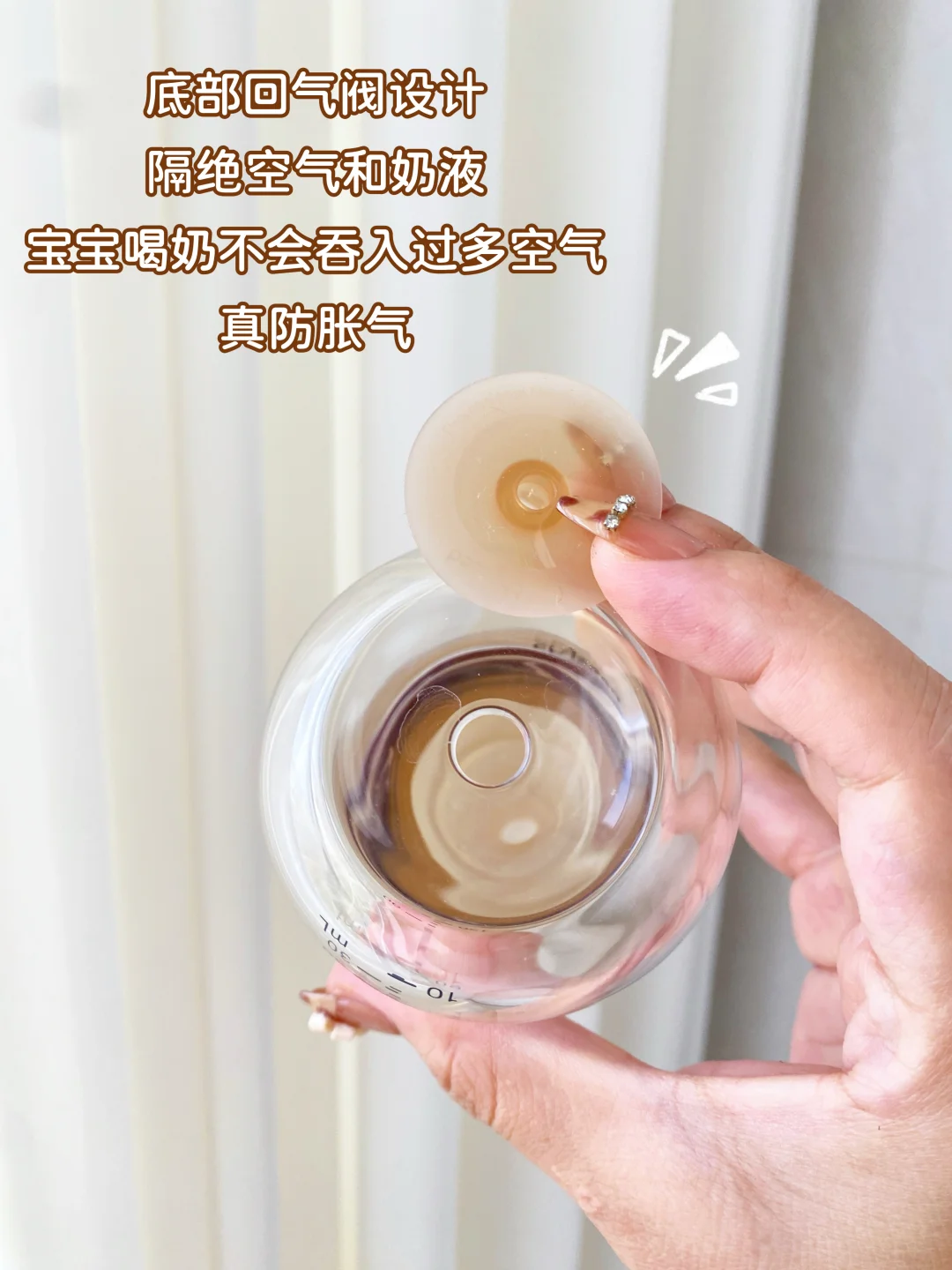 160ml,玻璃材质,温奶很快!关键是底部带有回气阀,真正做到了空气和奶液分离,避免宝宝吃奶时吞入过多气泡。
