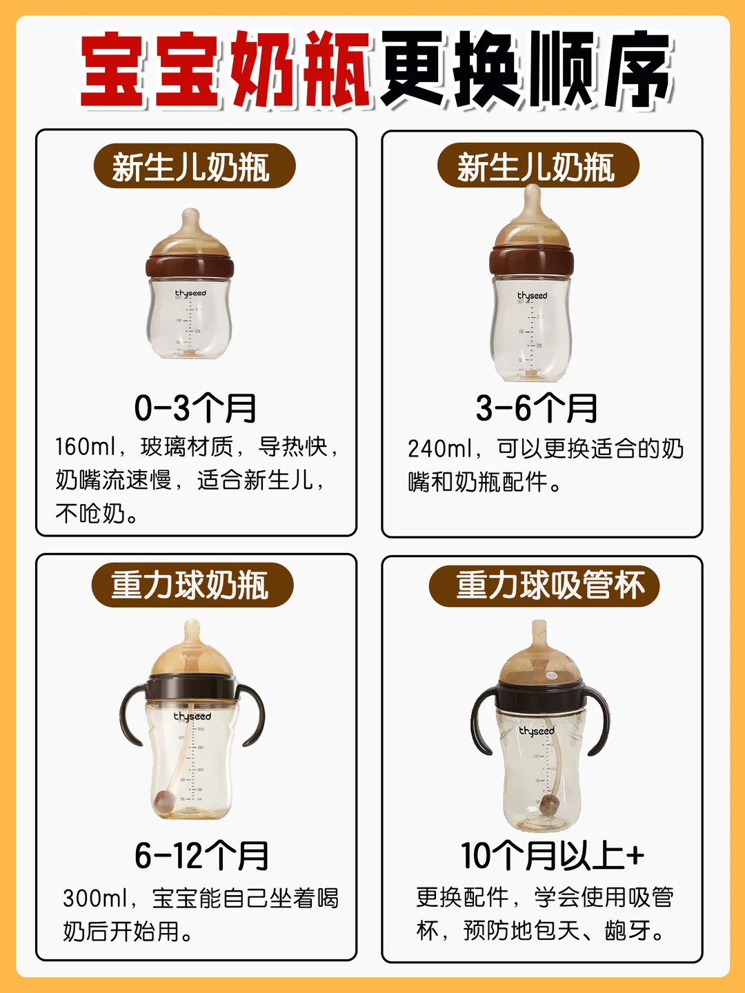 🍼3-6个月(240ml):3个月后奶量越来越大,足够宝宝一次喝饱
