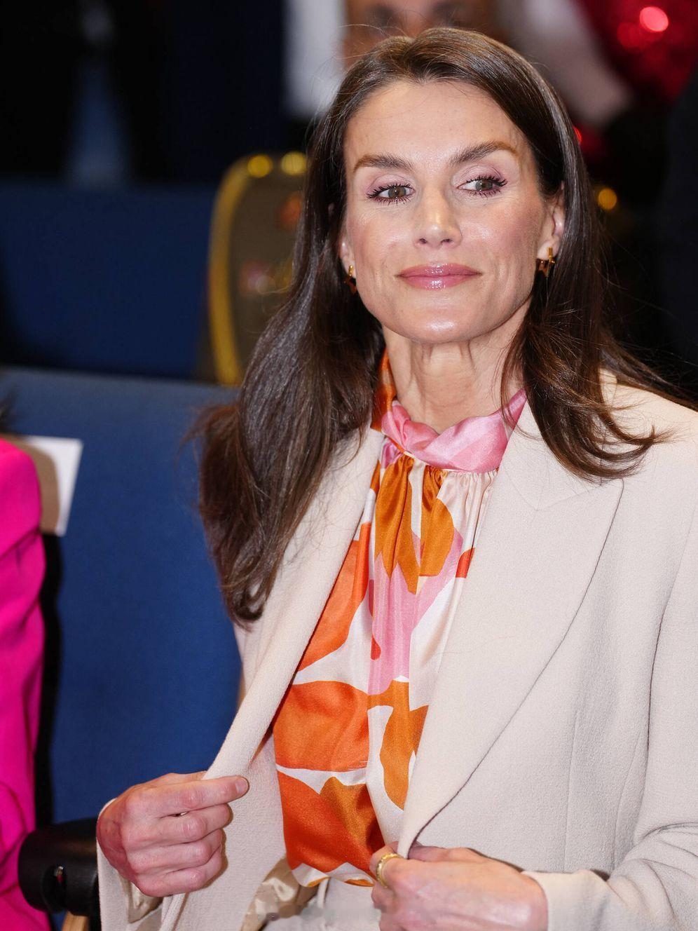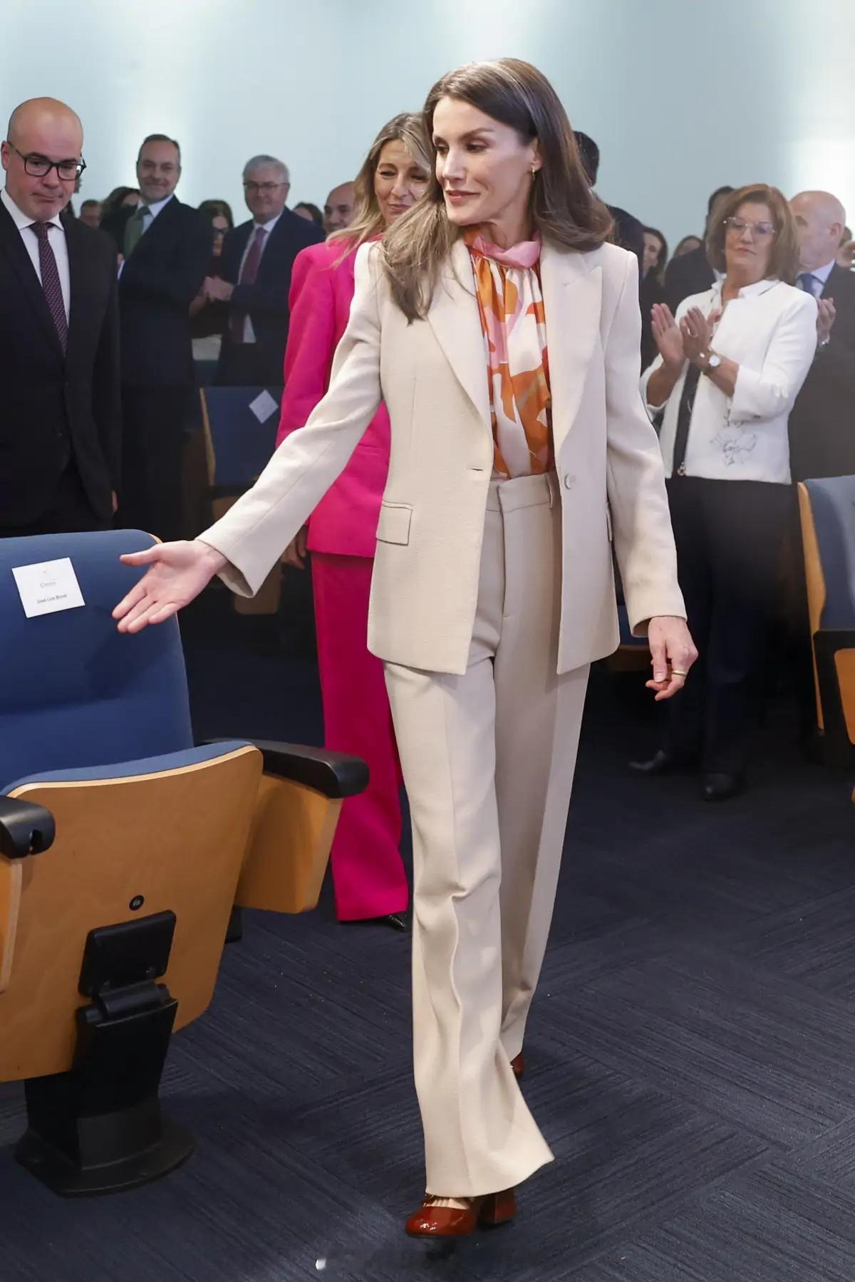 西班牙王室 4月8日,莱后也复工啦!她在马德里西班牙商会出席了“青年英才计划”十周年纪念活动。花里胡哨的衬衫来自真爱品牌hugo boss,为今日份ootd增添了一抹亮色,玛丽珍鞋来自Sézane(色号+1)。