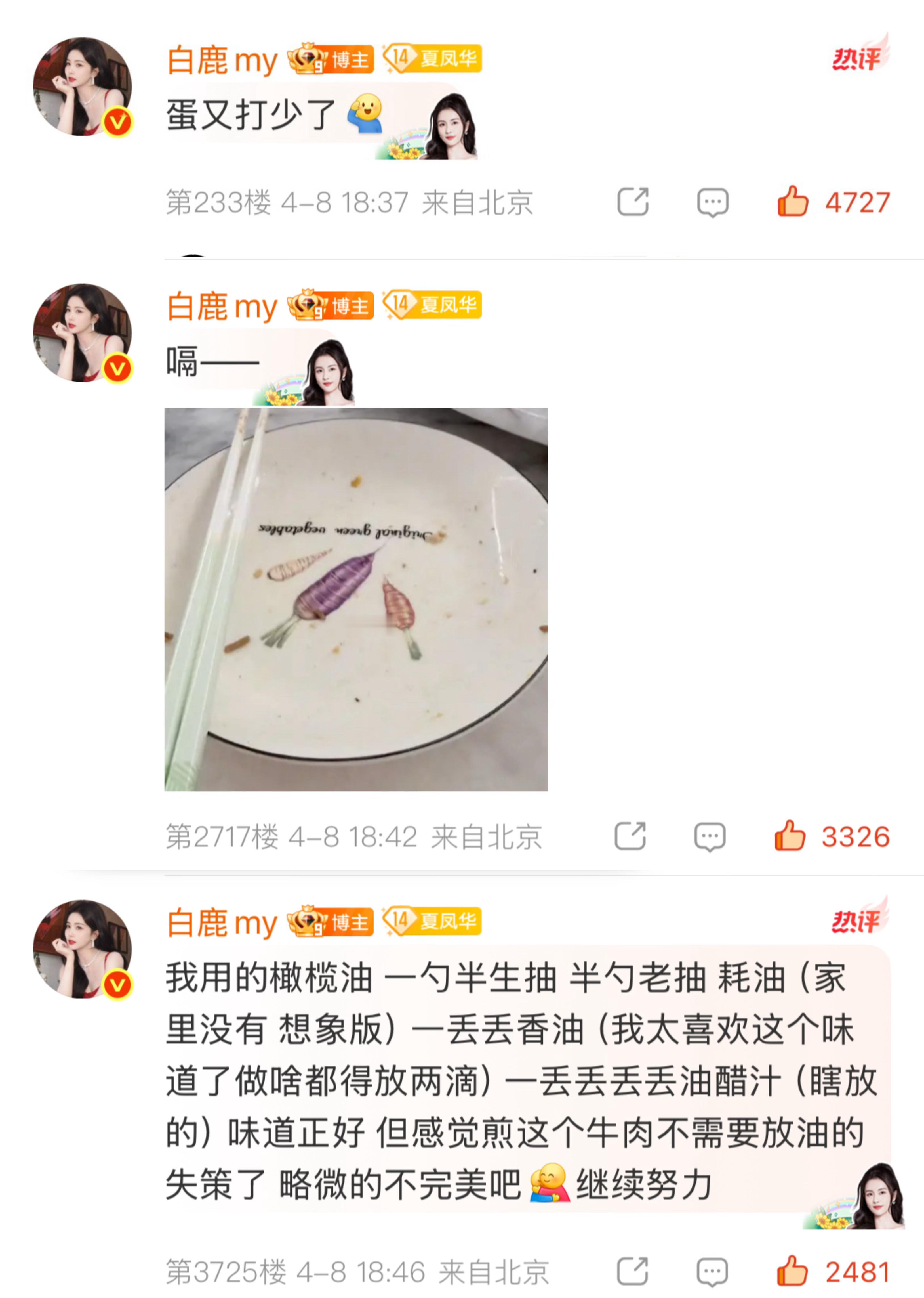 白鹿小厨师做饭历程2.0今日食谱是做西葫芦牛肉蛋炒面🍽️认真炒完面了 美美拍照分享给鹿茸们 “卖相一般 是真好吃” 肯定一下自己 吃起来美味!🍽️“蛋又打少了” 一点点美中不足 下次多打点🍽️“嗝——”晒出自己的光盘 美味到吃光!🍽️总结 白鹿炒面配方🈶橄榄油 一勺半生抽 半勺老抽 耗油(家里没有 想象版) 一丢丢香油 一丢丢丢丢油醋汁“但感觉煎这个牛肉不需要放油的失策了 略微的不完美吧继续努力”一点点小遗憾 下次再做!又是白鹿分享做饭日常 就这样宠我 建议镜头翻转让我看一下炒面吃面的厨师好吗🥺