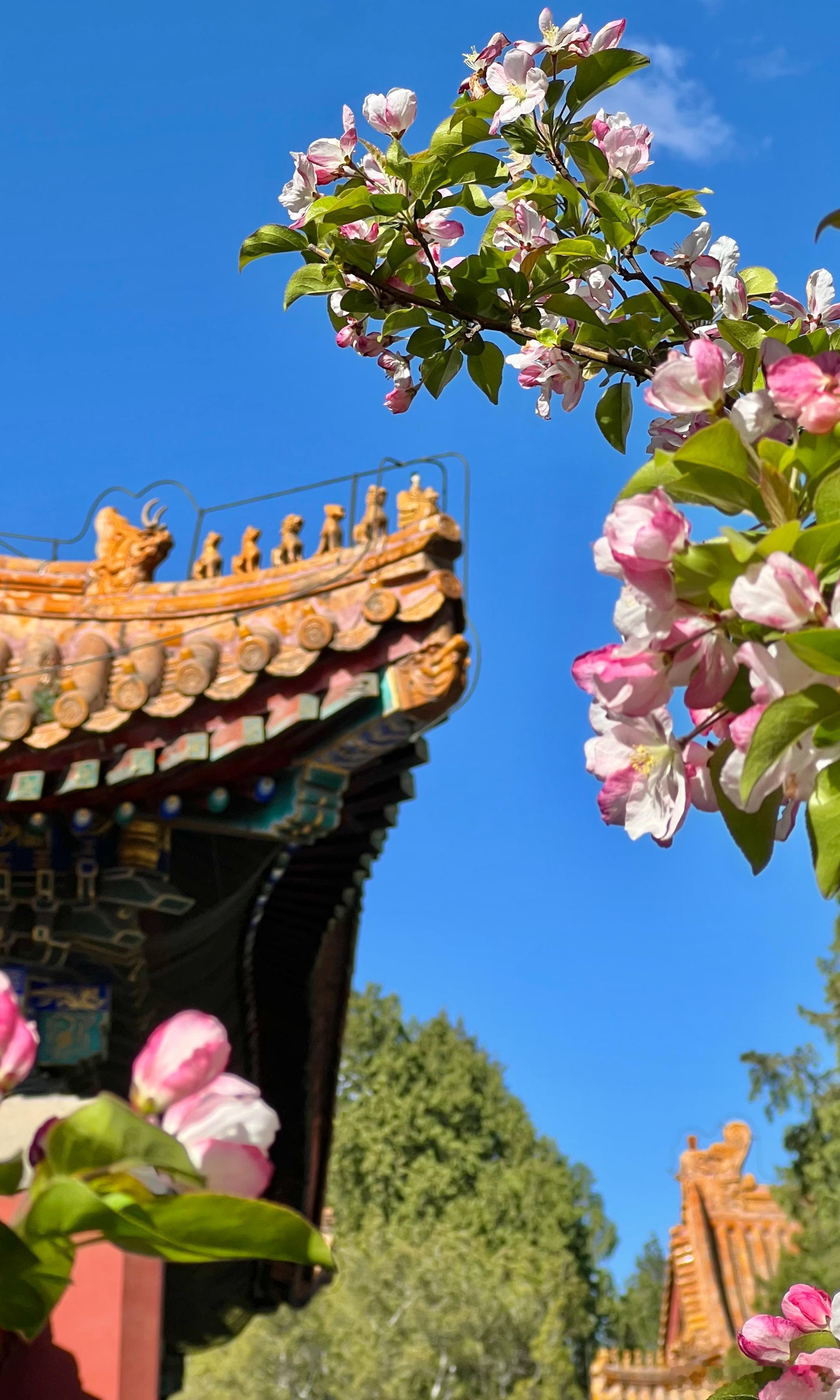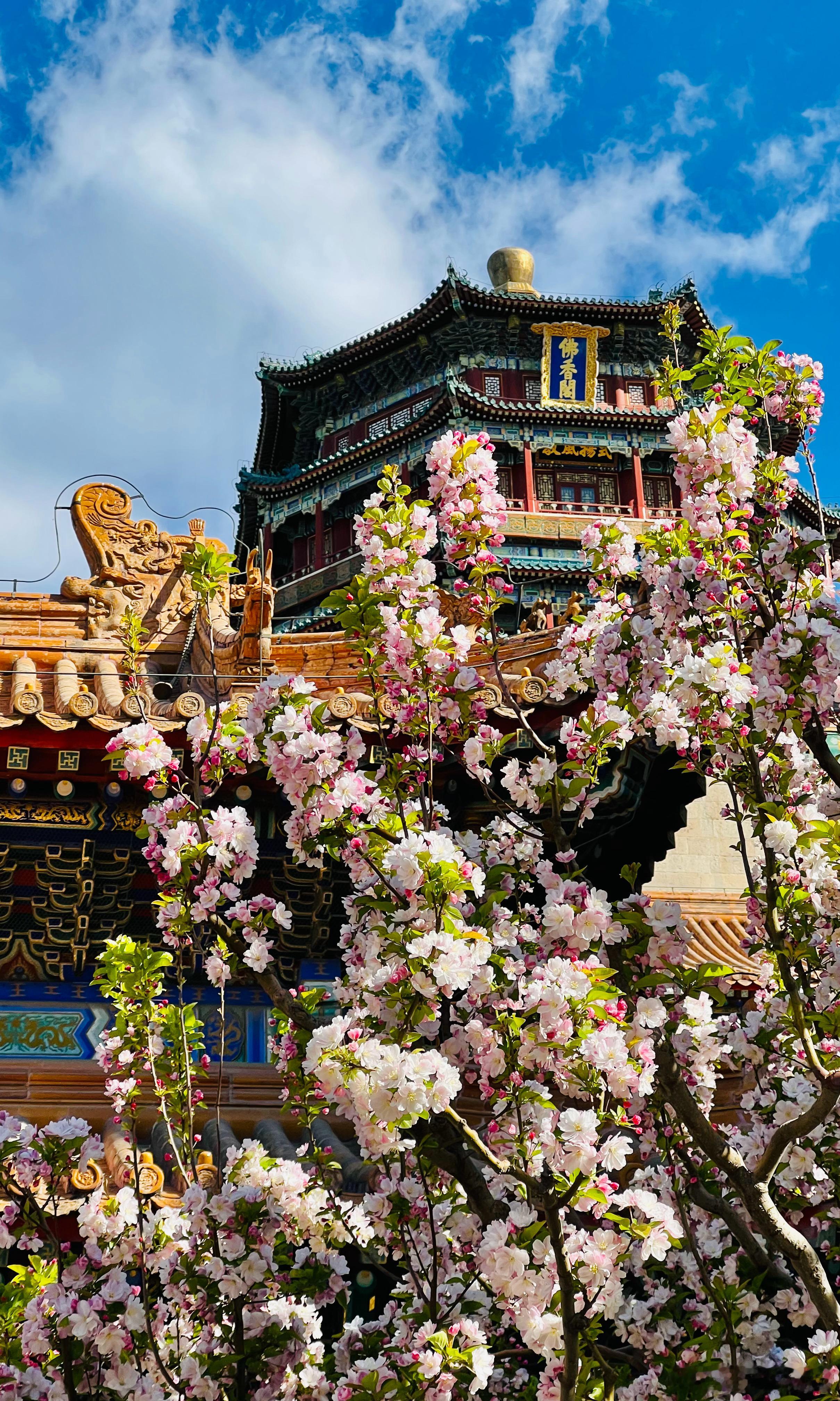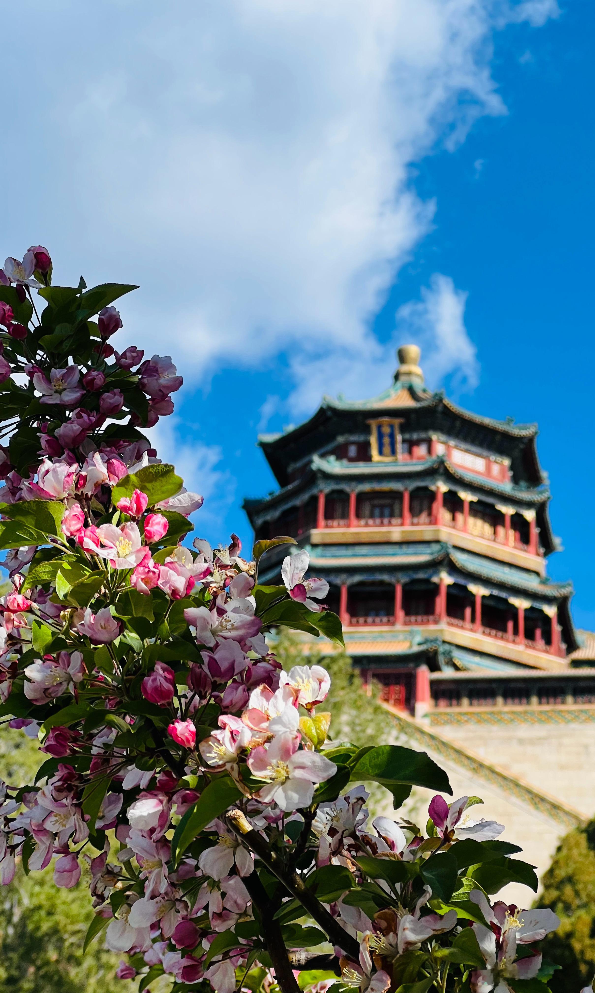 颐和园 佛香阁 海棠花开摄影