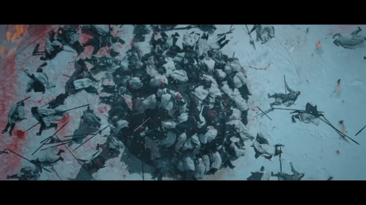 李昀锐冰湖重生踏尸迎战名场面李昀锐第1集1分31秒踩尸山镜头1分31秒镜头冲击力