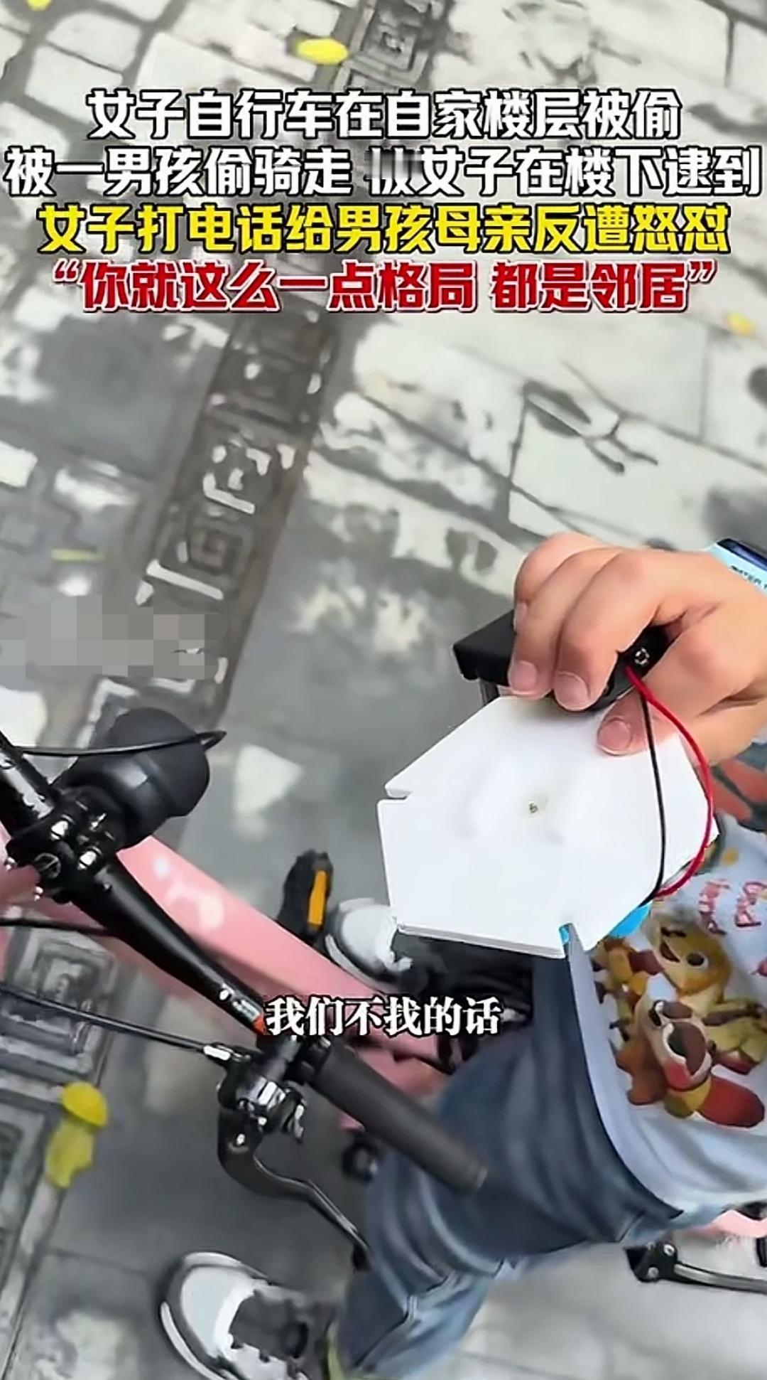 “就这么点格局,大家都是邻居”,自家小孩未经他人同意,骑走另一栋居民的自行车,人家追查过来讨说法。小孩的母亲不仅没意识到事情的严重性,竟还抛出这样几句这样的话。这话换作谁听了都不好受,何况失主和她压根不认识。