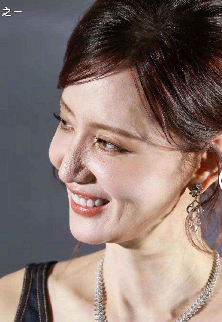 特写镜头下,她的鼻子状态最令人堪忧。鼻翼两侧的毛孔粗大得肉眼可见,坑洼不平,配上厚重的底妆,直接出现了明显的“卡粉”卡纹现象,显得肤质粗糙无比。原本精致的鼻影在此刻也显得脏脏的,非但没撑起立体骨相,反而和坑洼的肤质形成了强烈的视觉反差,瞬间暴露了疲态。