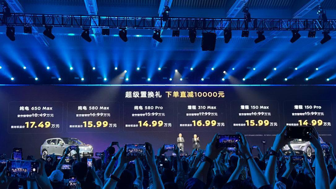不过定价属实不错,2 种动力六个版本,限时权益 14.99W 起,大师版 19.9W,差不多 4 米 9 的大五座 SUV ,很可以了。