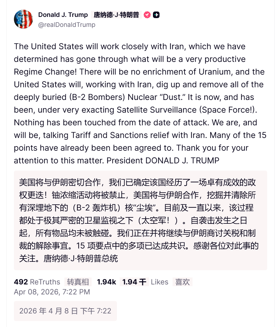 🔻特朗普:“美国将与伊朗密切合作,我们已确定该国经历了一场卓有成效的政权更迭!铀浓缩活动将被禁止,美国将与伊朗合作,挖掘并清除所有深埋地下的(B-2 轰炸机)核‘尘埃’。目前及一直以来,该过程都处于极其严密的卫星监视之下(太空军!)。自袭击发生之日起,所有物品均未被触碰。我们正在并将继续与伊朗商讨关税和制裁的解除事宜。15 项要点中的多项已达成共识。感谢各位对此事的关注。唐纳德·J·特朗普总统”🔻特朗普:“任何向伊朗提供军事武器的国家,其销往美利坚合众国的所有商品将立即被征收 50%的关税,即刻生效!没有任何例外或豁免!总统唐纳德·J·特朗普”🔻特朗普真是失败啊,现在依然打着呢。🔻via realDonaldTrump伊朗拉万炼油厂发生爆炸特朗普称能轻易恢复对伊朗动武海外新鲜事中东现场直击