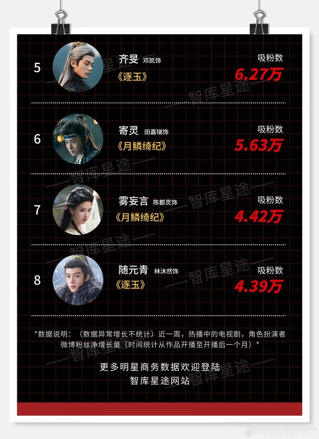 智库星途 热播剧集角色吸粉榜统计时间2026年0330-0405张凌赫 田曦薇
