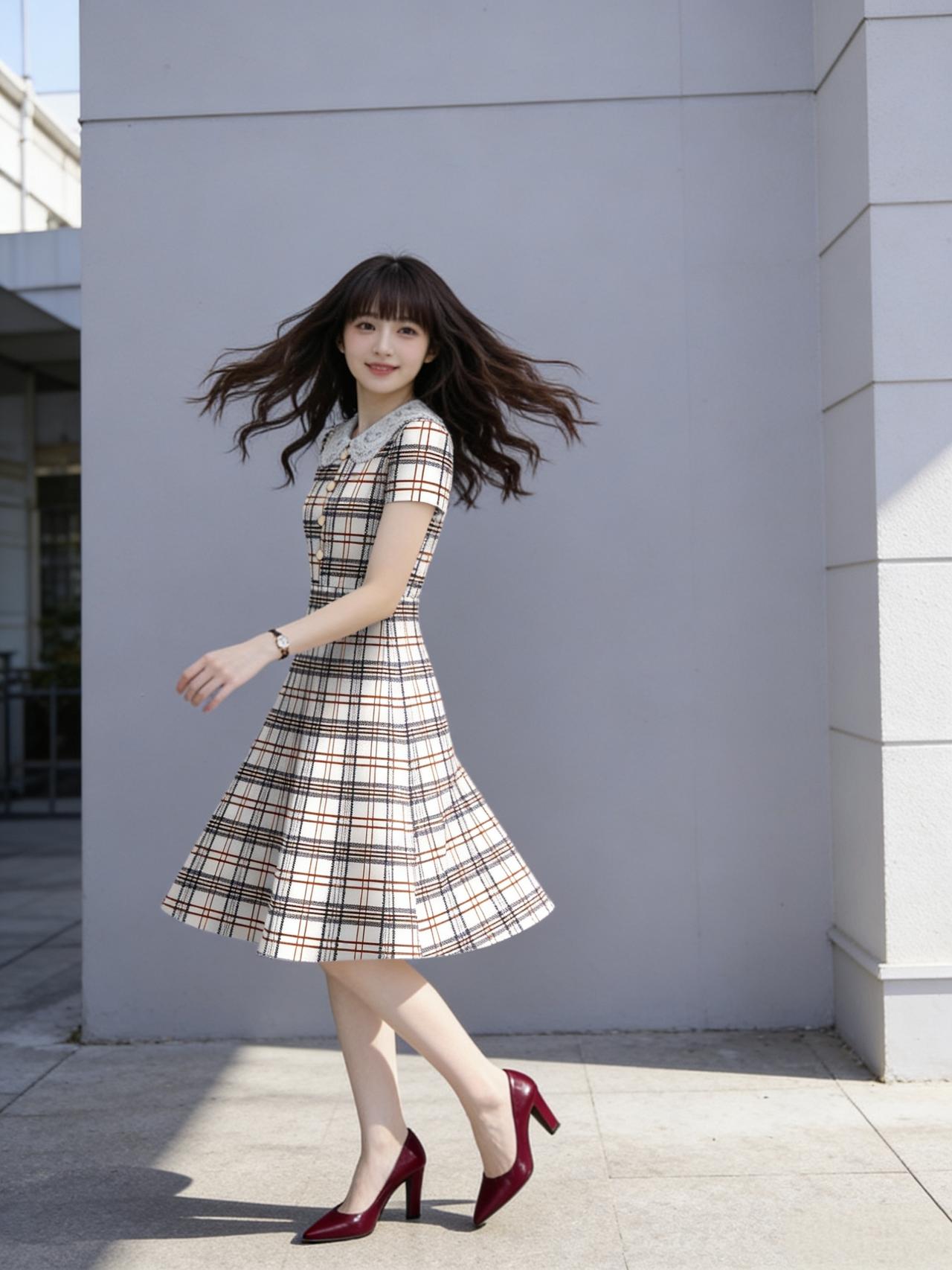 甜美校园风少女,黑白格子裙搭配黑丝袜,清新可爱!💕📚👗