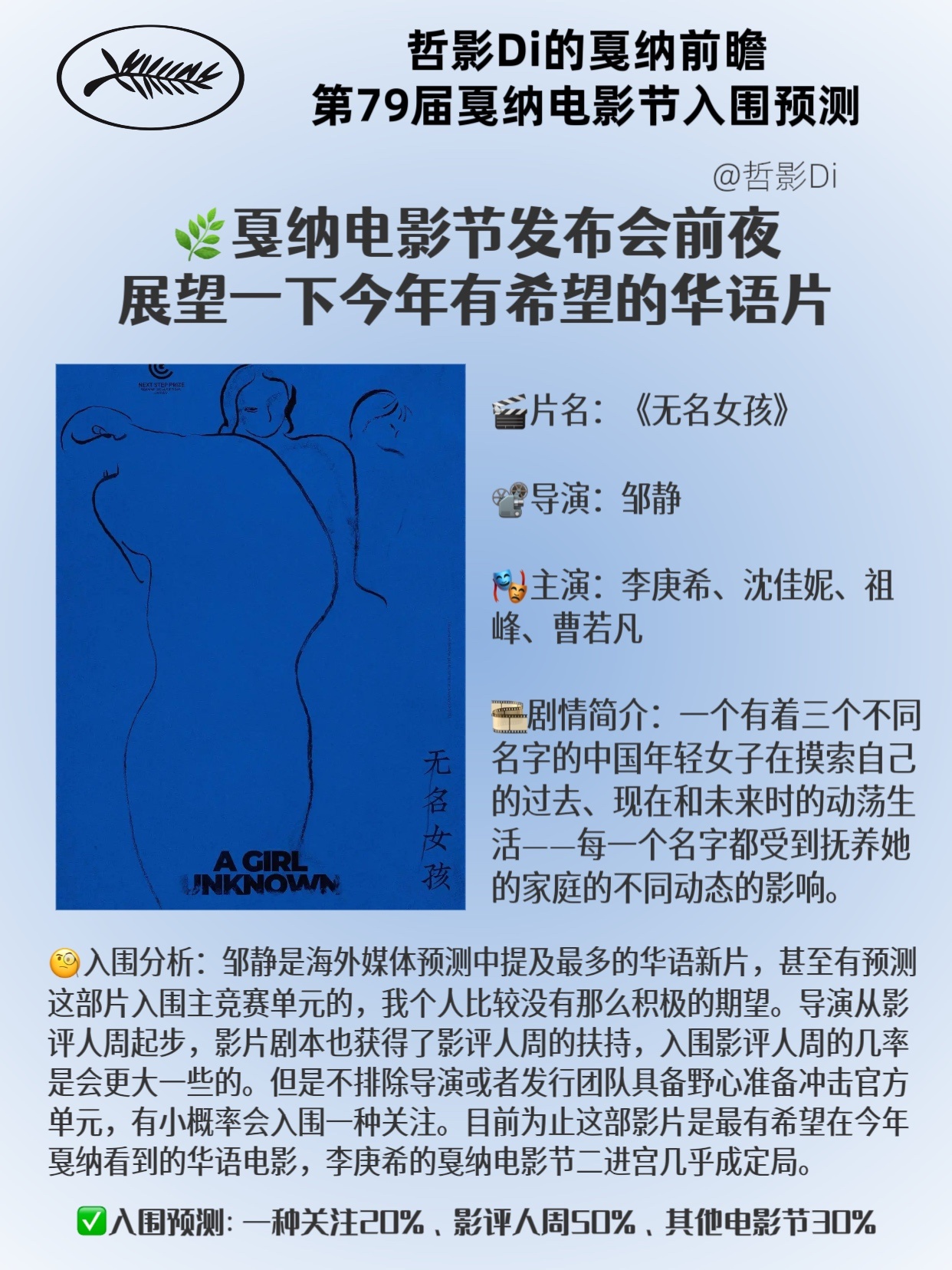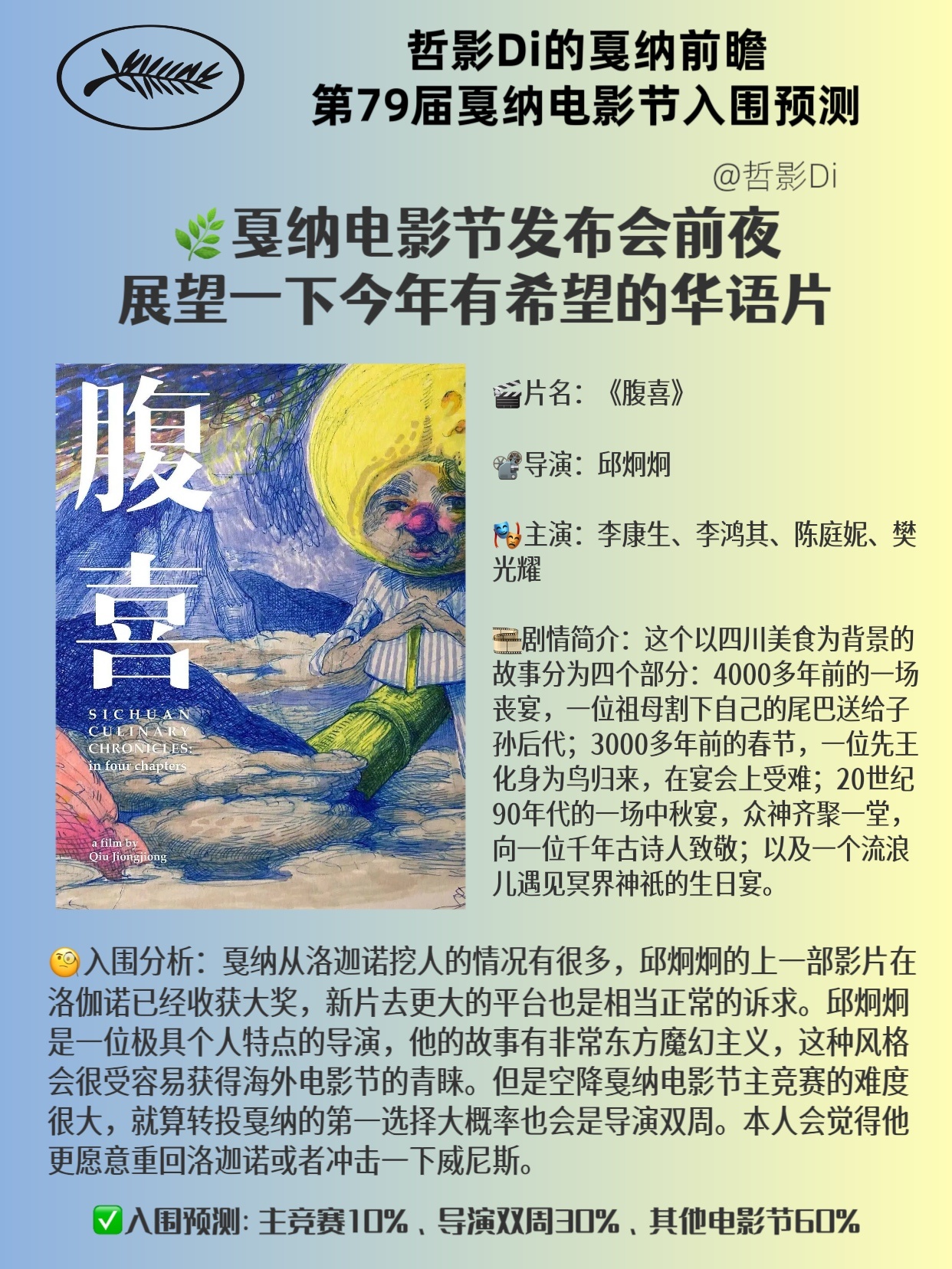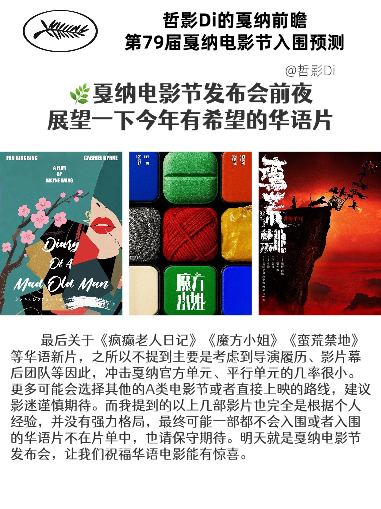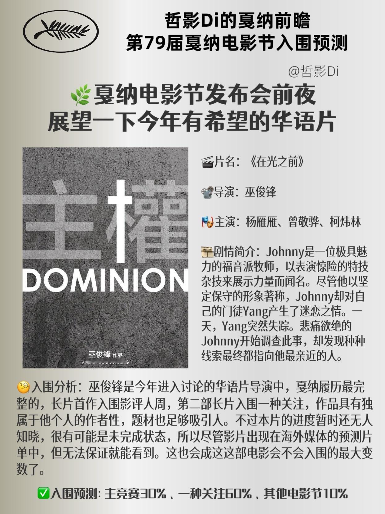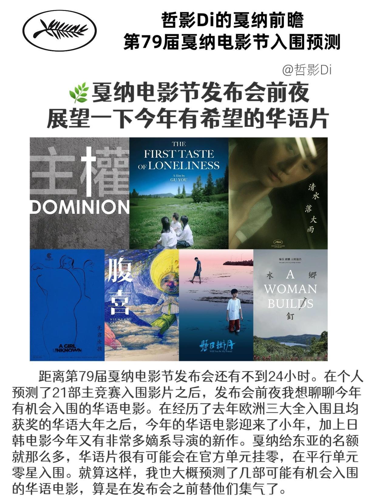 【哲影Di的戛纳电影节前瞻】第79届戛纳电影节入围预测(华语电影)距离第79届戛