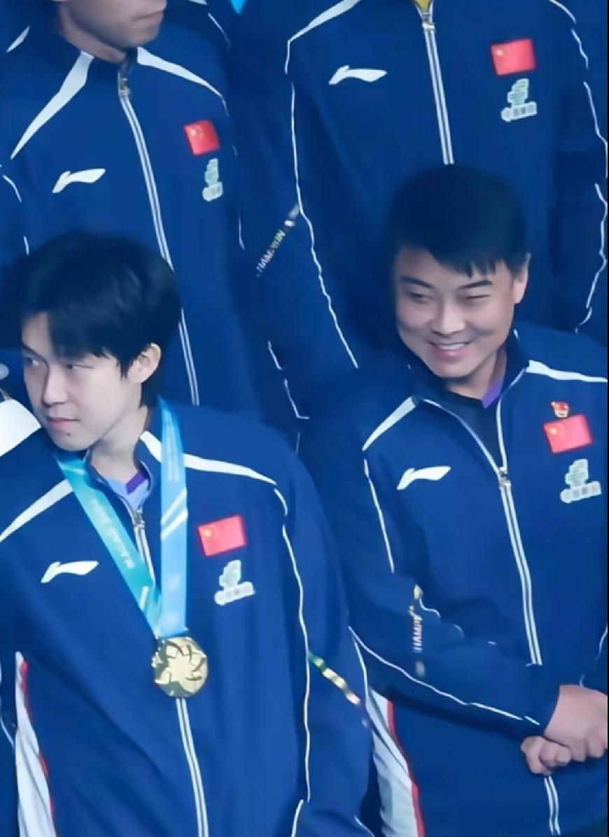 瞬间感觉他比在赛场上年轻了十岁。