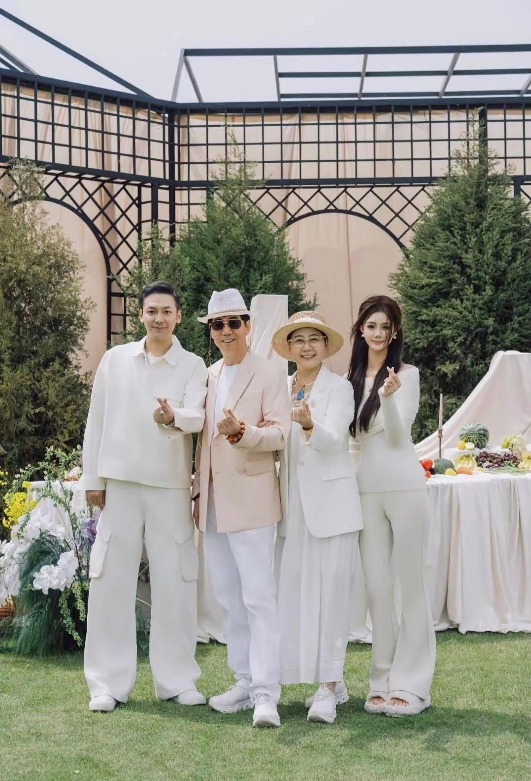 演员范明与妻子厉玲共庆珍珠婚纪念日,一家四口温馨同框。继子挺拔帅气,女儿甜美可人,幸福满溢。