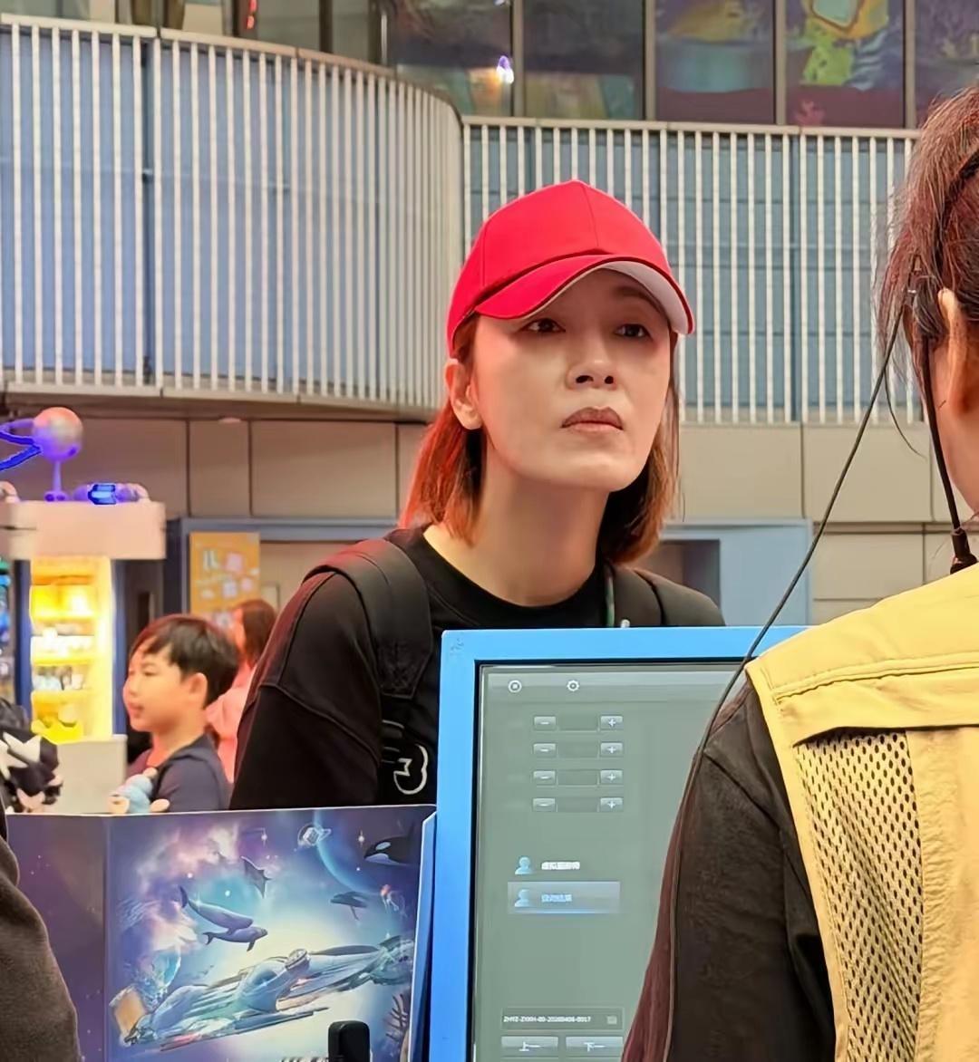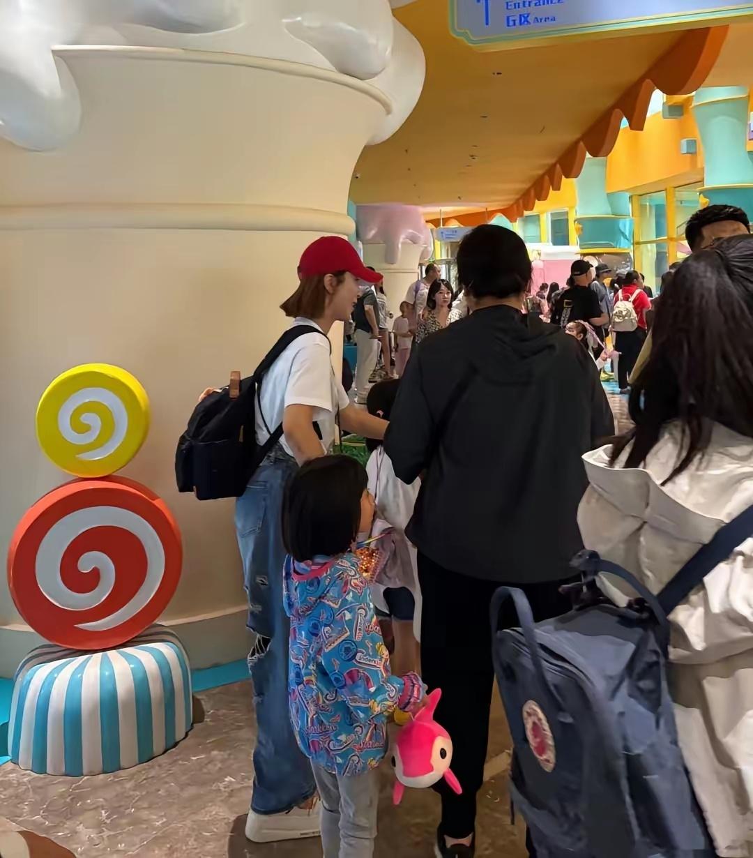47岁杨怡和老公罗子溢带一对子女在珠海长隆乐园游玩,她的穿衣打扮时尚有型,她现实
