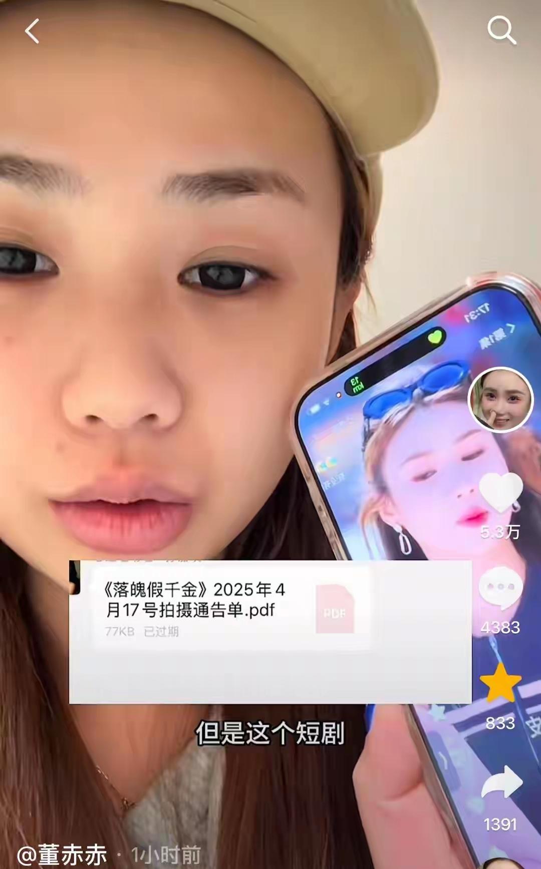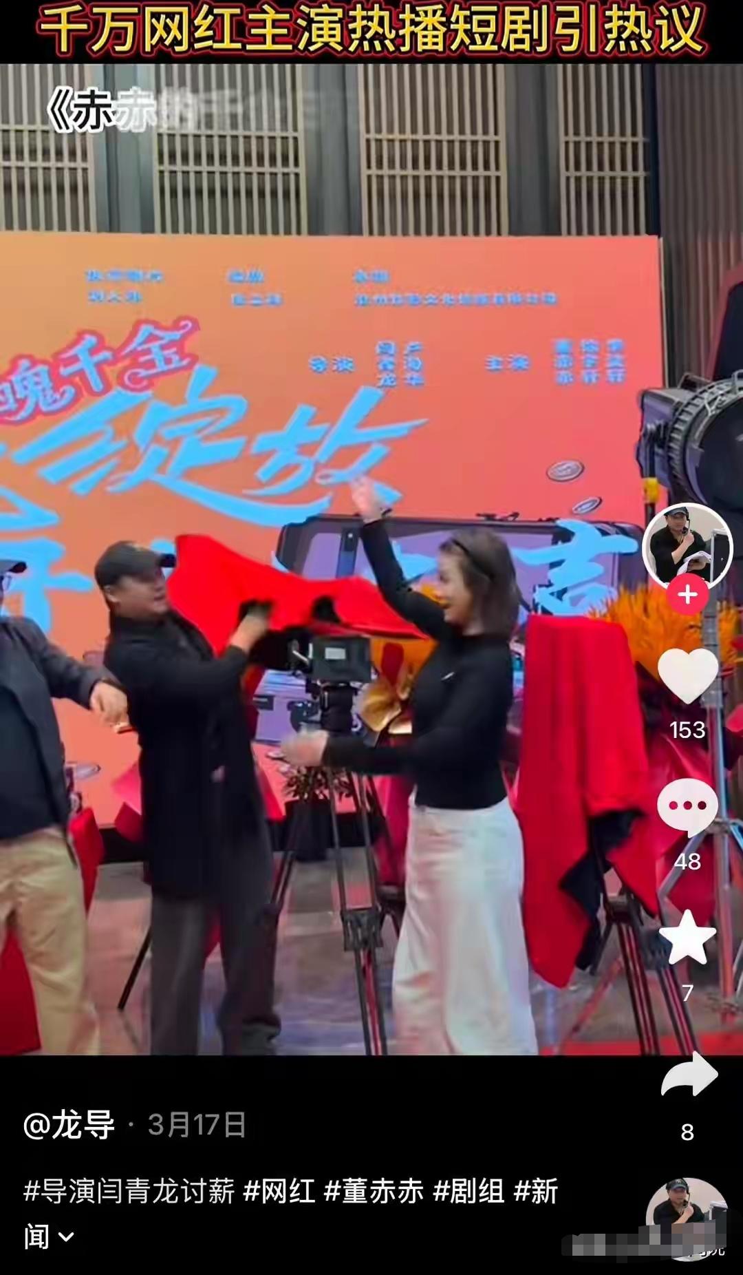原因是是因为,当初带领她进入短剧拍摄的导演和甲方闹掰了,这导演呢无奈只能去送外卖配送,后续为了自己讨薪,拿着董赤赤的知名度发文,网友呢却认错了,误认为董赤赤是甲方的投资人之一,于是舆论的压力全部给到了董赤赤。