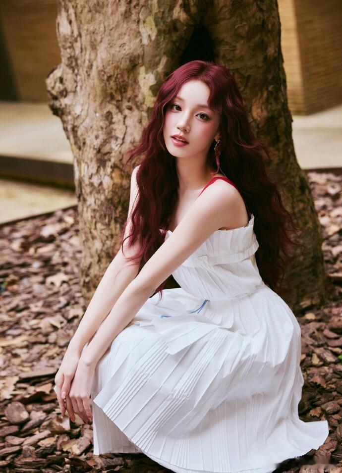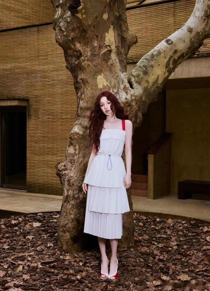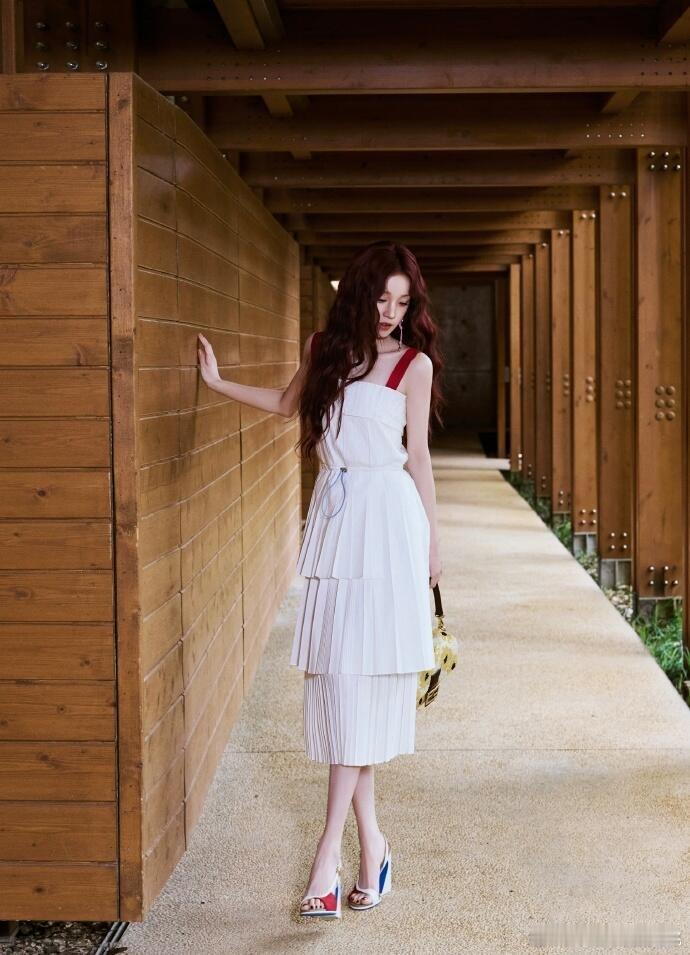 宋雨琦|Domus FENDI私享罗马意境之旅酒红色卷发,白红撞色百褶吊带裙勾勒