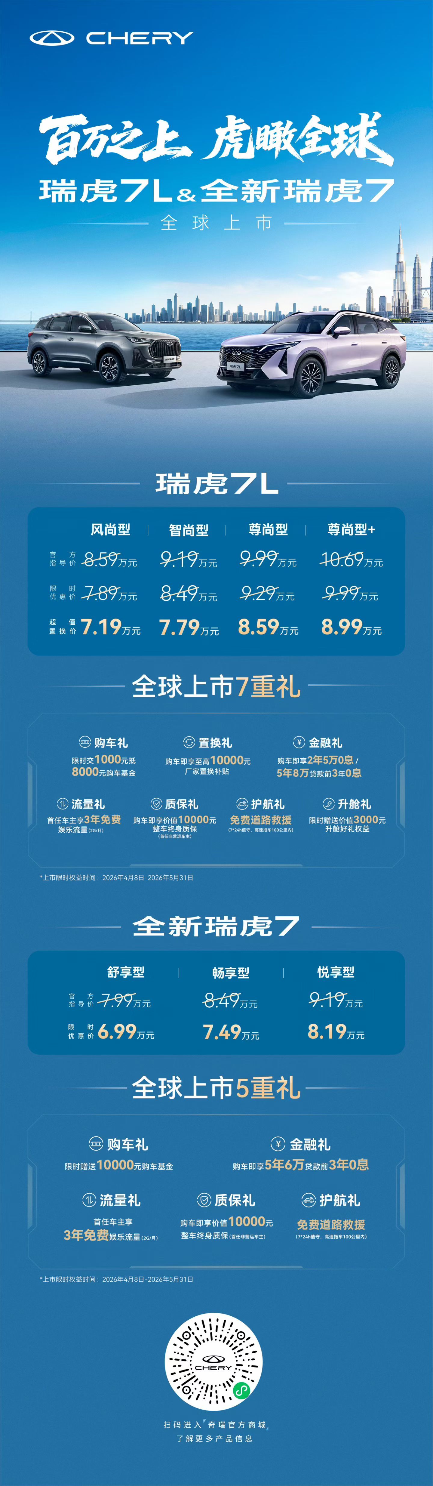 奇瑞今天一口气带来了三台车,瑞虎7L、瑞虎7还有瑞虎5运动版!其中,瑞虎5运动版,超值置换价6.79 万元起而瑞虎7L,全新瑞虎7,上市限时优惠价也来到了6.99万元起,这些价格确实相当给力!