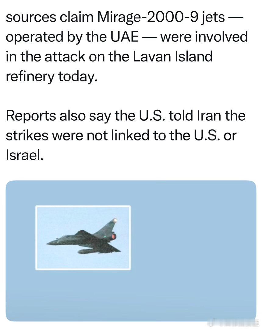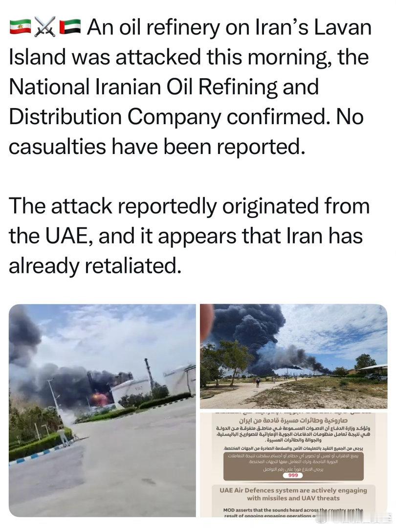 阿联酋战斗机空袭伊朗炼油厂