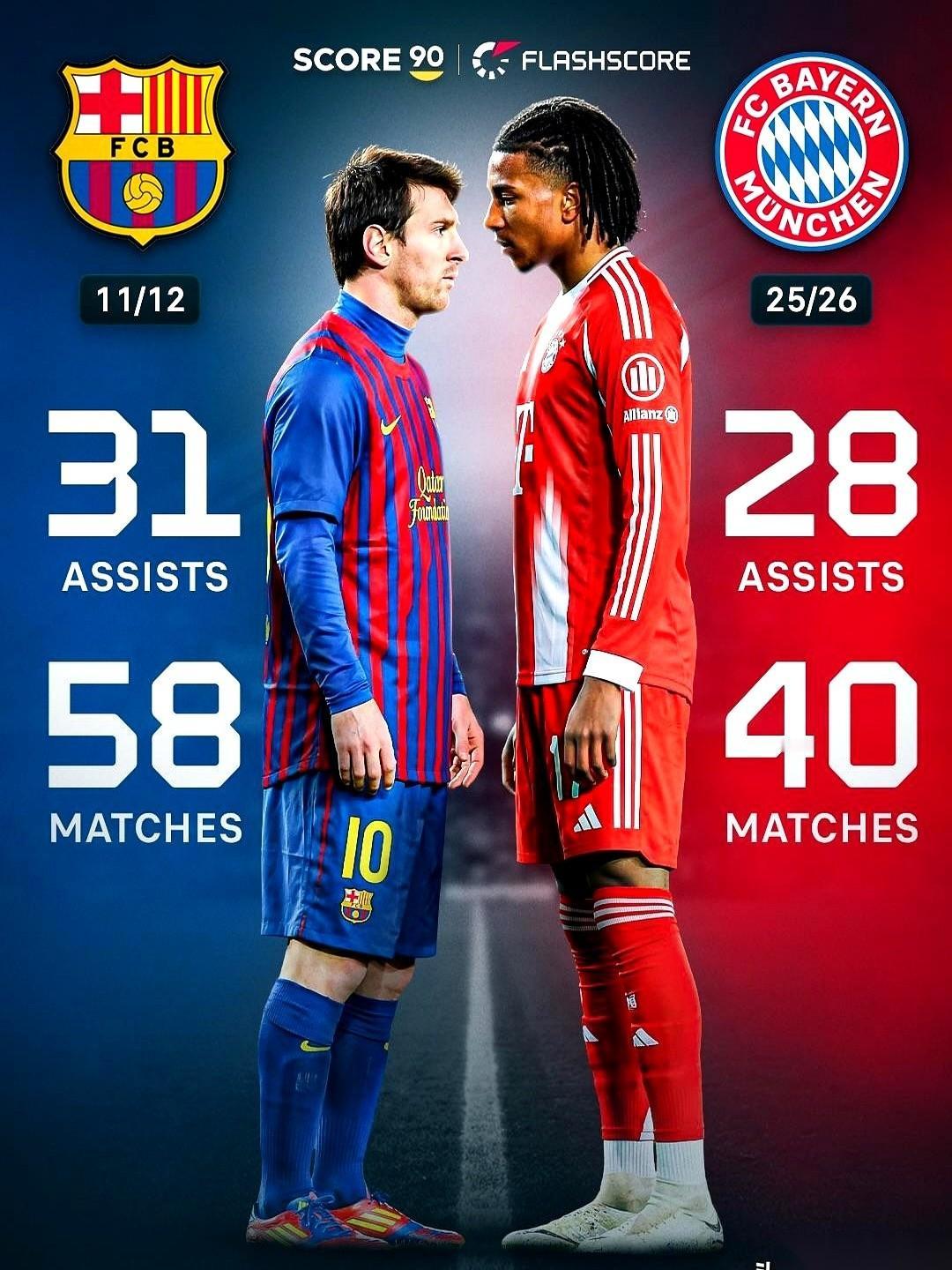 而梅西当年创下31次助攻的神迹,整整用了近60场比赛。